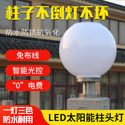 太阳能柱头灯户外防水大门柱子围墙新农村led不碎球形圆球庭院灯
