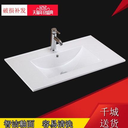 洗手盆单盆一体薄边半嵌入式台中陶瓷台面卫生间单孔洗脸柜盆单买