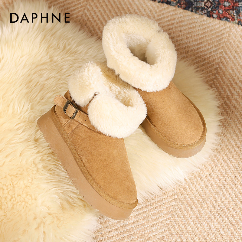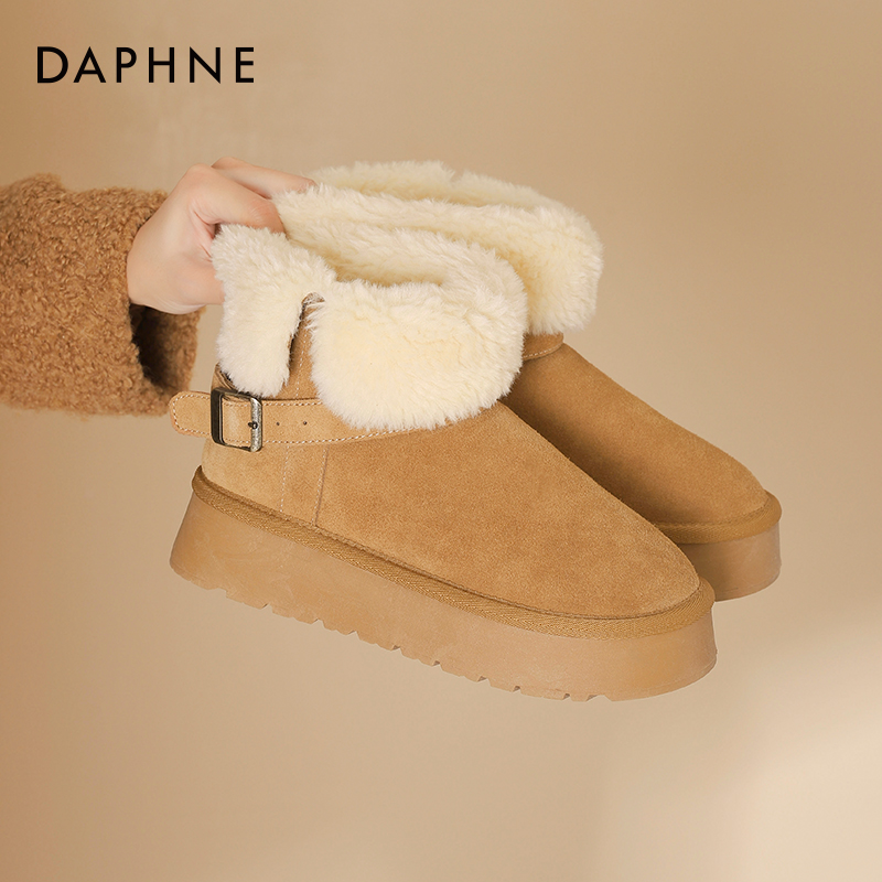 达芙妮厚底雪地靴真皮冬季棉鞋女