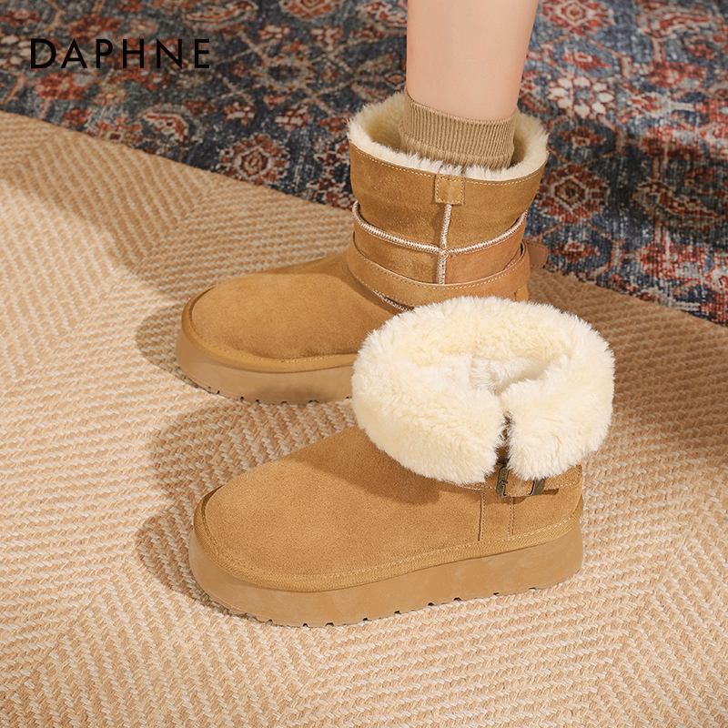 达芙妮厚底雪地靴女2025新款冬季女鞋加绒保暖真皮靴子东北棉鞋女