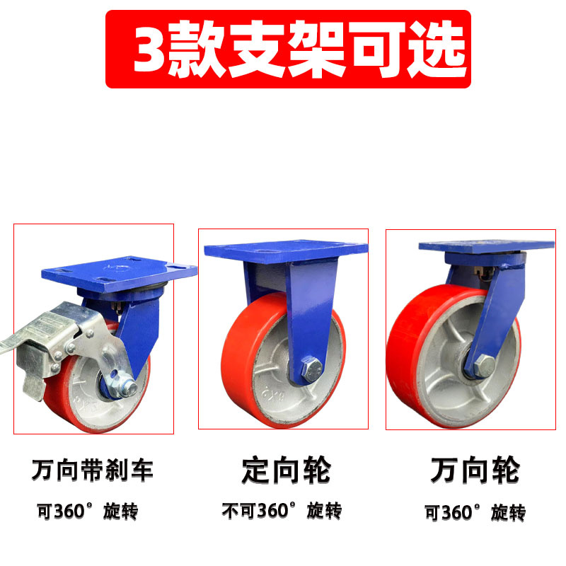 超重型万向轮轮子聚氨酯脚轮5寸6寸8寸10寸12寸铁芯PU工业承重轮