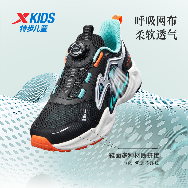 特步童鞋春季款透气网布学生运动儿童鞋中大童男鞋防滑耐磨跑步鞋