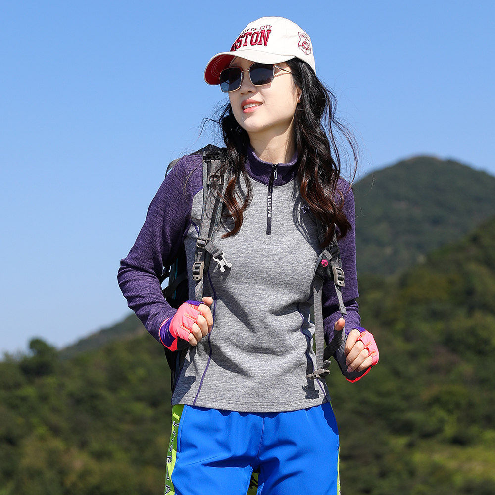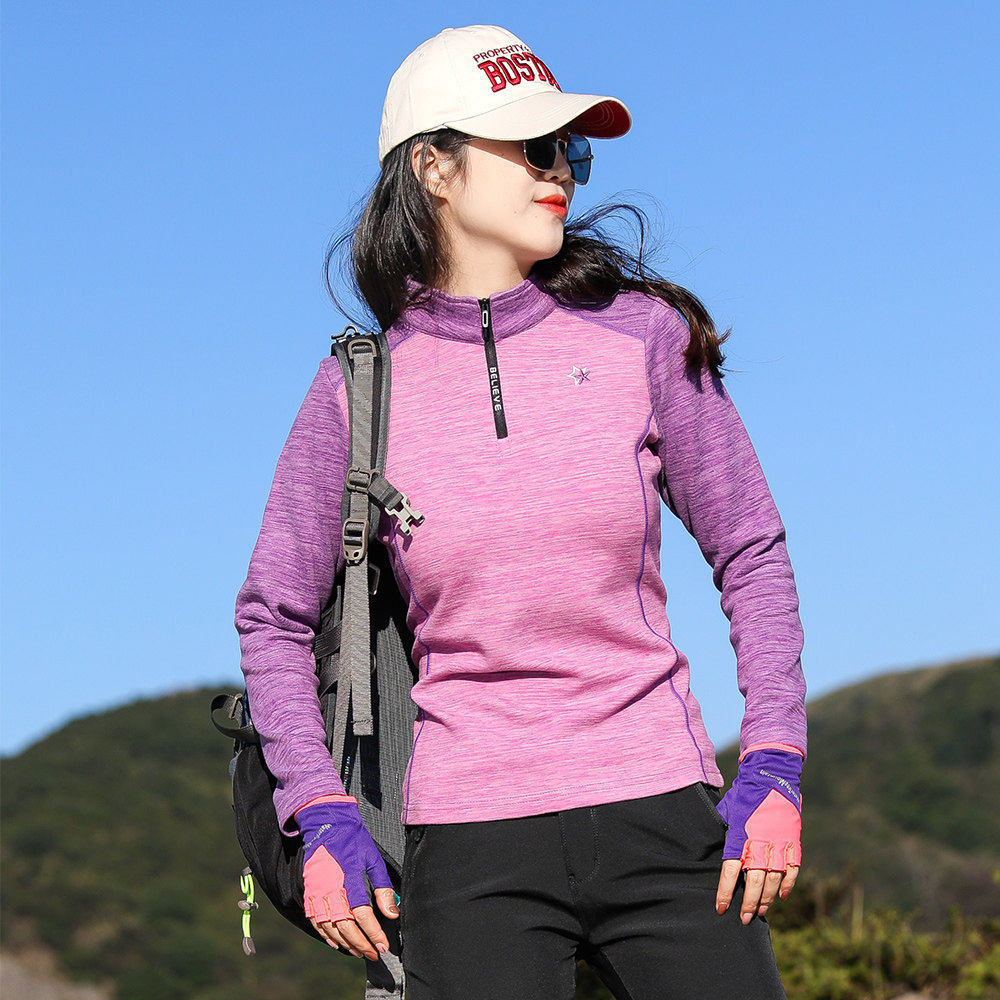 凯乐石薄荷户外德绒弹力抓绒衣女上衣长袖T恤女加厚保暖衣磨毛绒