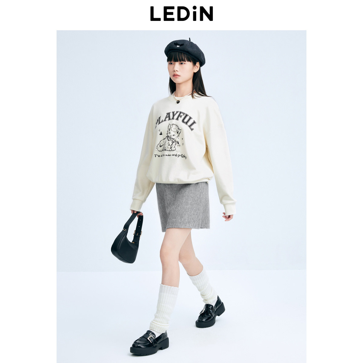 【反季清仓】乐町灰格A字短裙女24年冬季新款显瘦半身裙C1GEE4F02