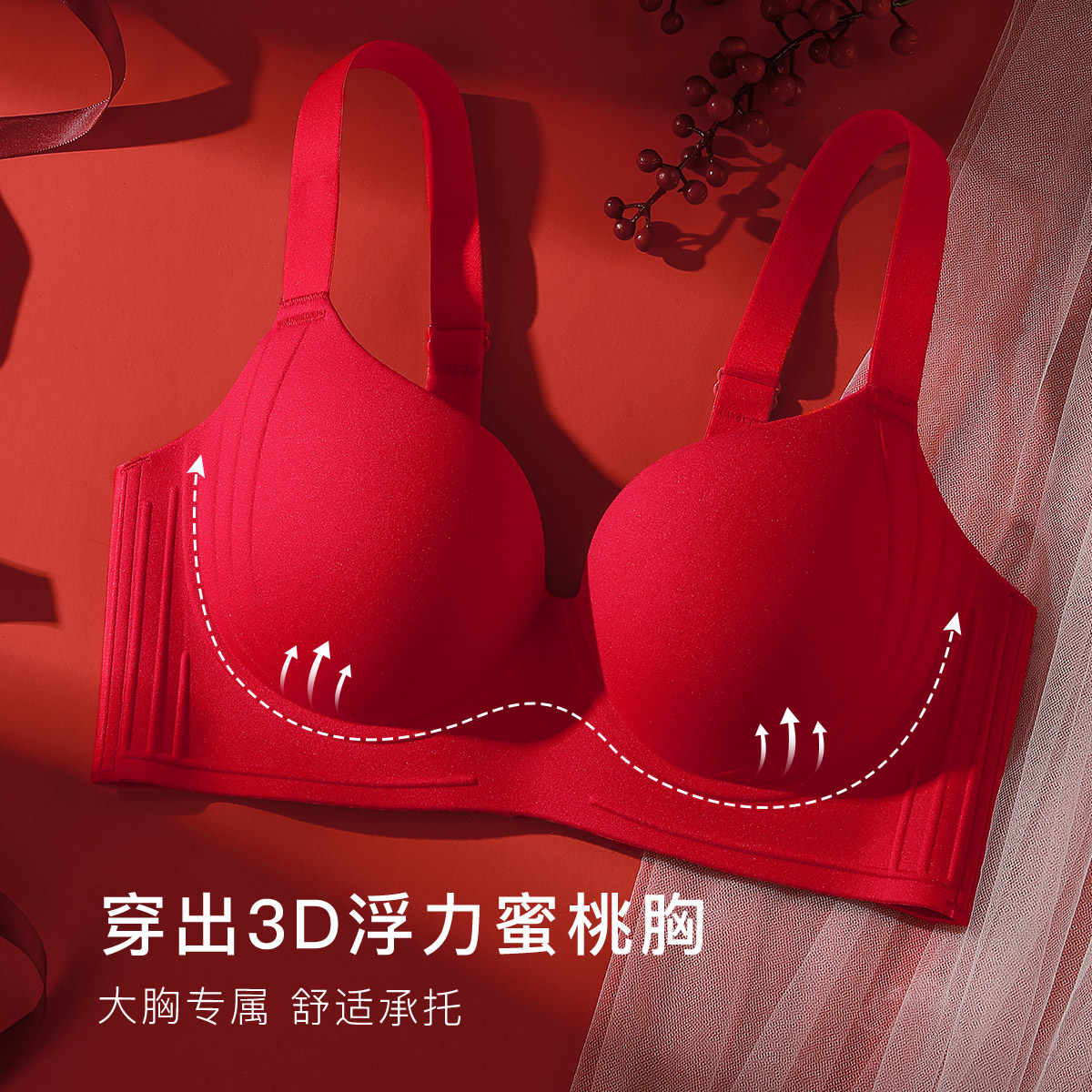 梦芭蒂红色本命年文胸套装女聚拢显大收副乳大胸无痕结婚内衣女
