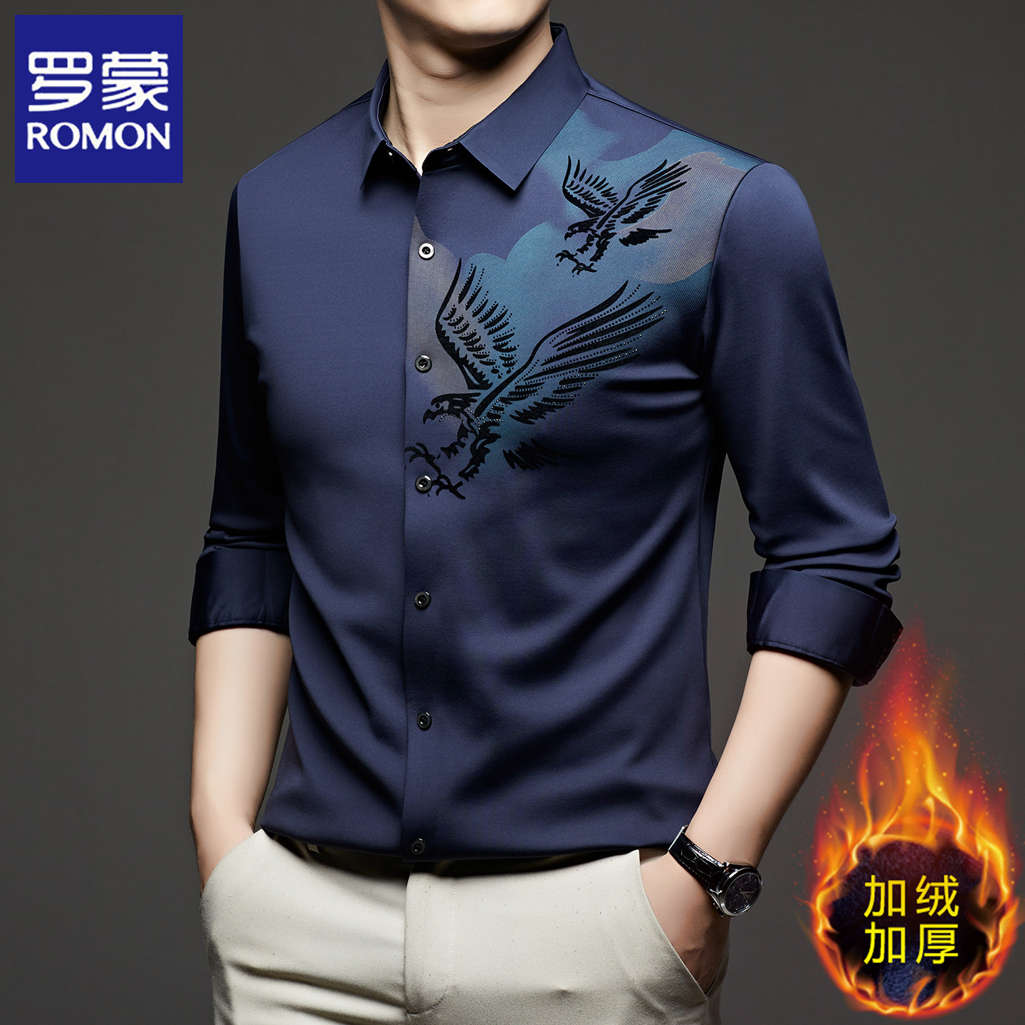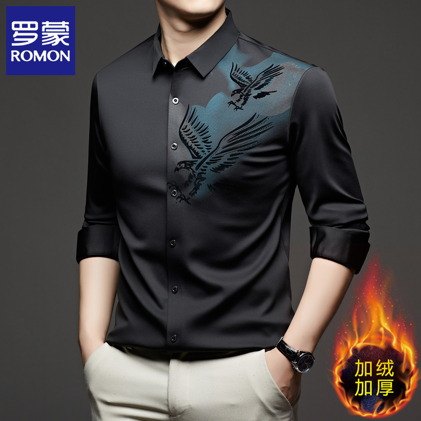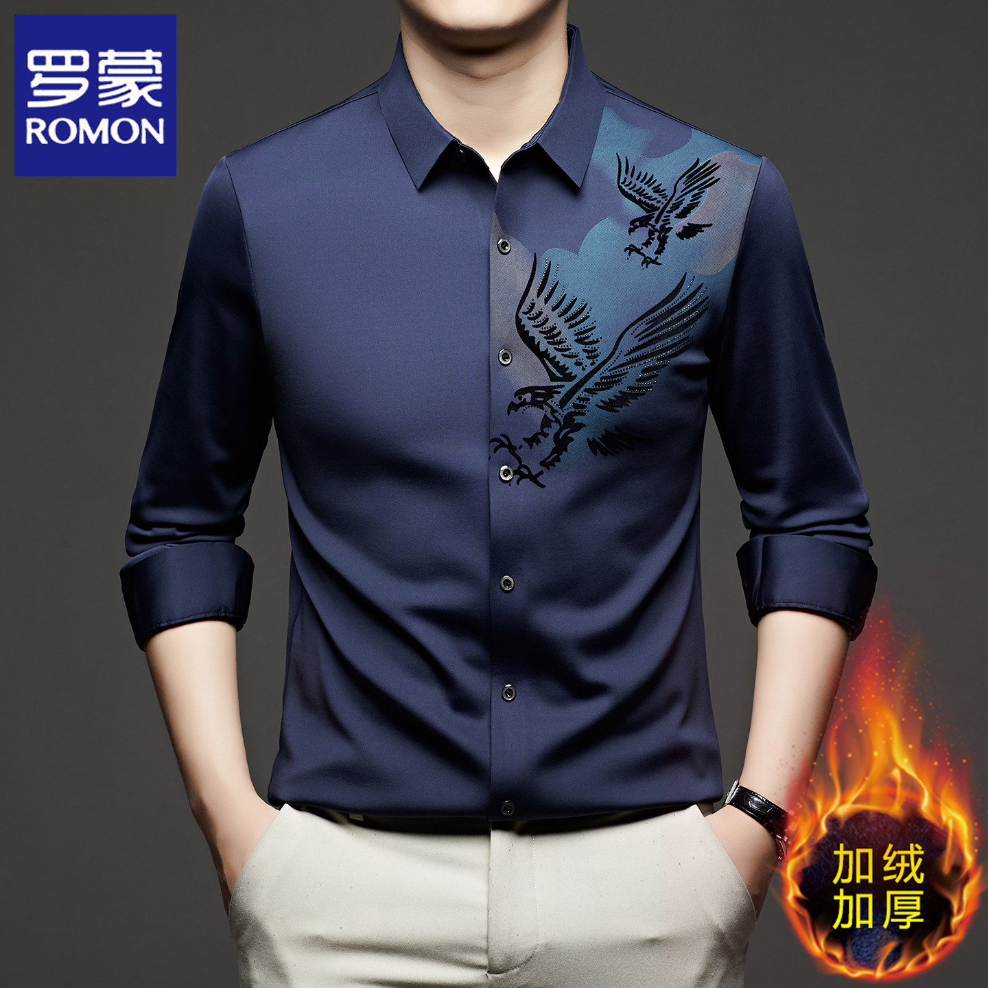 罗蒙加绒保暖男士长袖衬衫冬季新款商务休闲亲肤免烫抗皱加厚衬衣