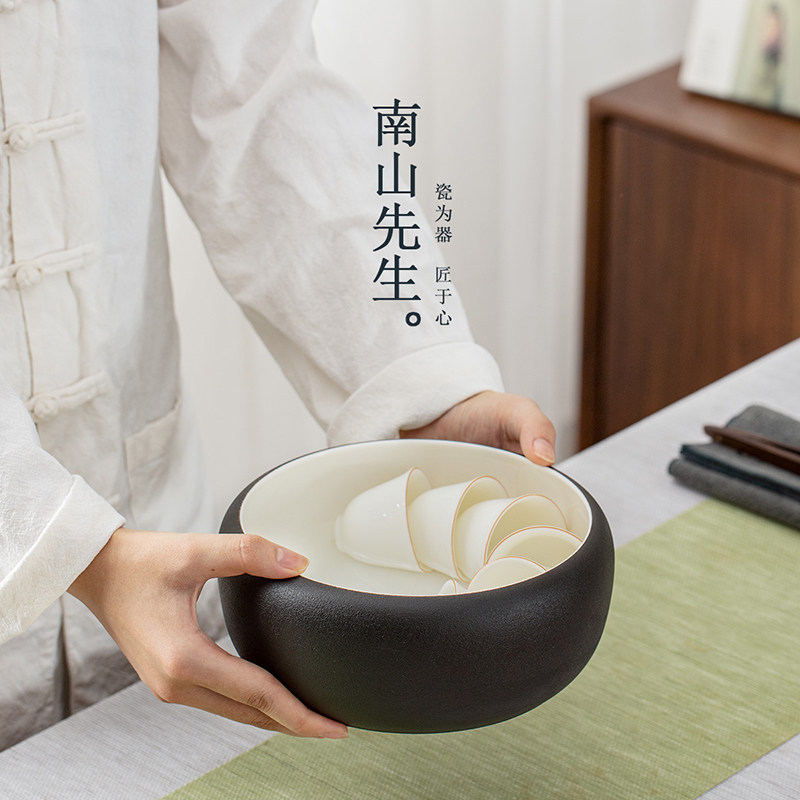南山先生 黑陶茶洗陶瓷家用大号茶渣缸水盂茶杯洗笔洗茶具零配件