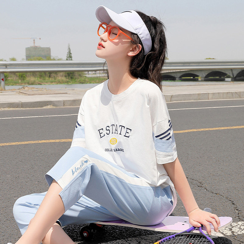 初中生运动套装女夏装中学生新款少女两件套运动装大童学院风休闲