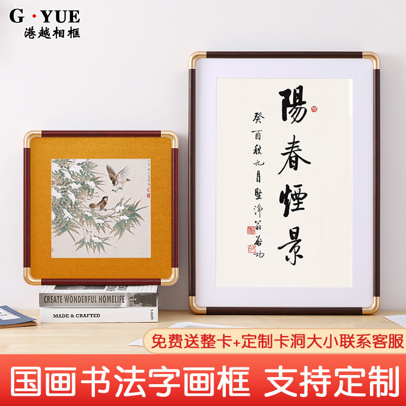 仿铜圆角实木卡纸画框装裱相框定制a4A3国画书法字空框4k8开挂墙