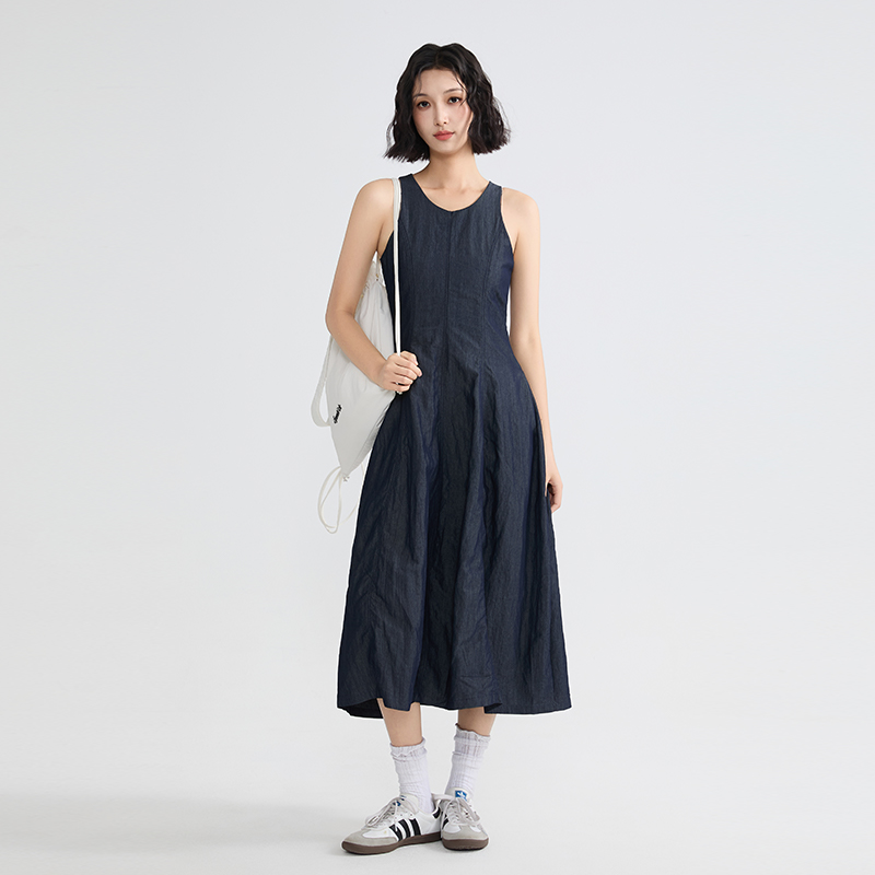 北欧时刻法式气质黑色无袖连衣裙女2025年夏季新款显瘦背心长裙子