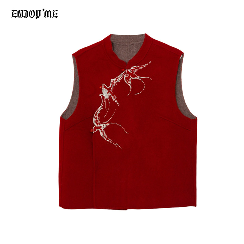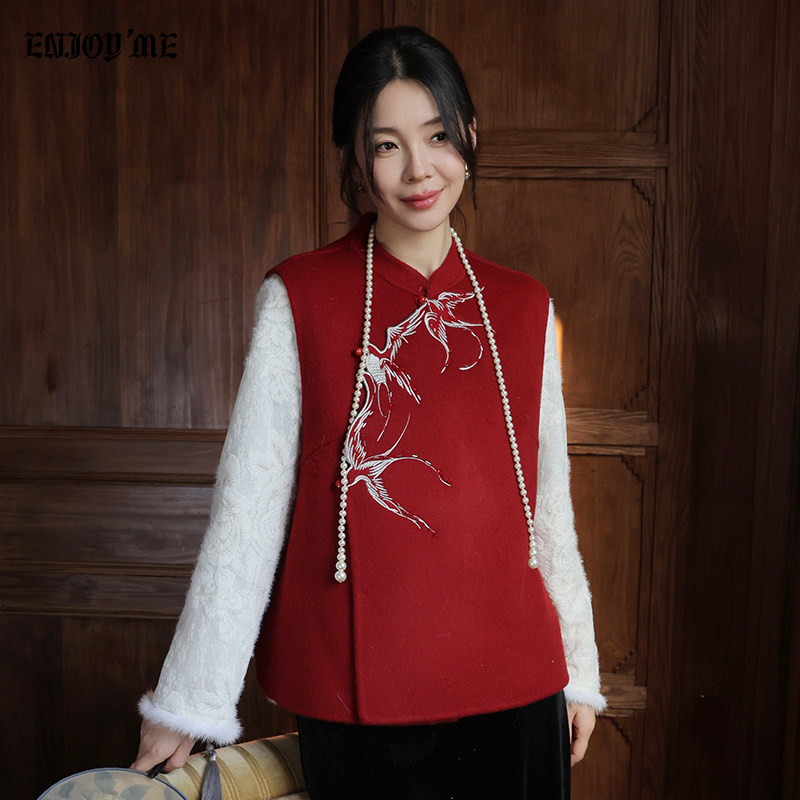 ENJOYME商场同款新中式红色雁南飞刺绣马夹女2025冬无袖盘扣上衣