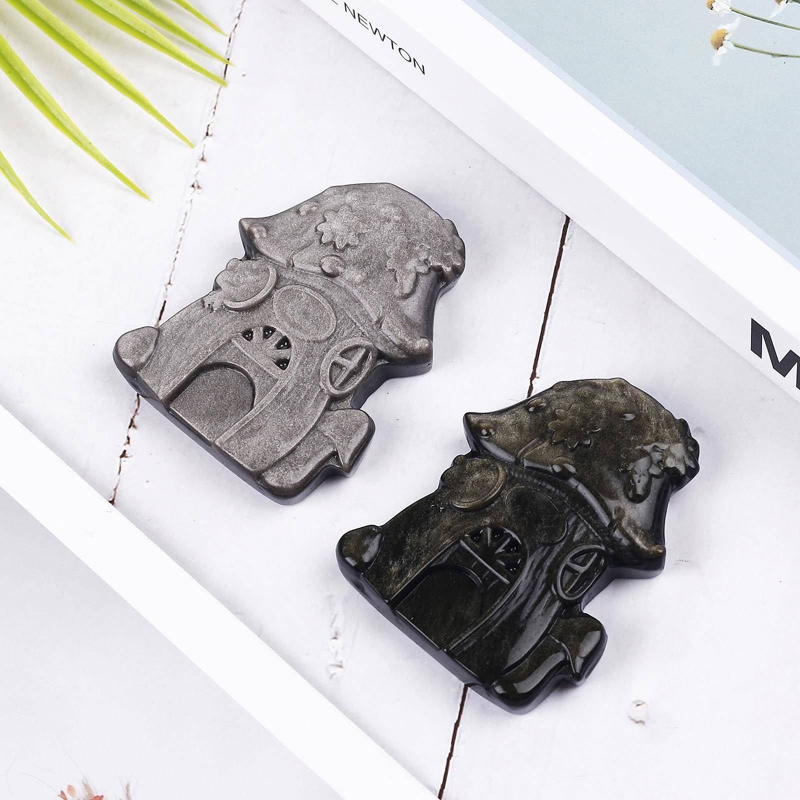 天然水晶雕刻件金银曜石平面雕刻摆件圣诞居家装饰挂件