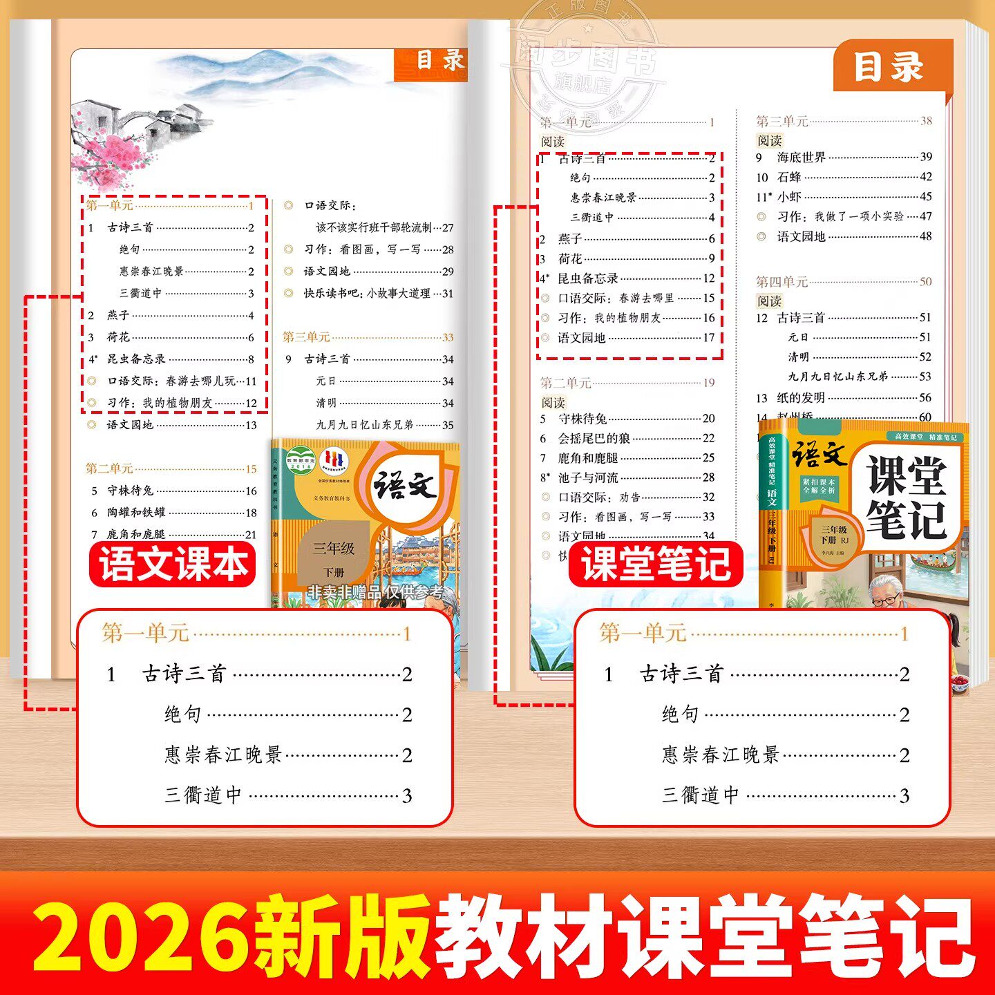 2026新版课堂笔记一二年级三年级四年级五六年级下册语文数学英语人教版课本小学新教材全解读教辅书黄冈随堂学霸笔记课堂预习本hy