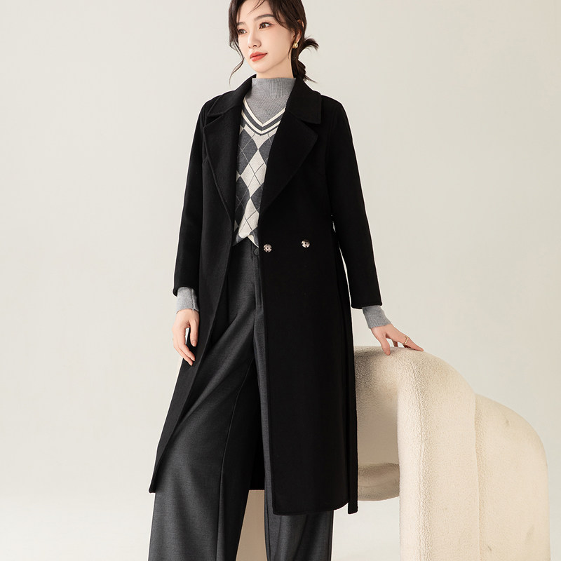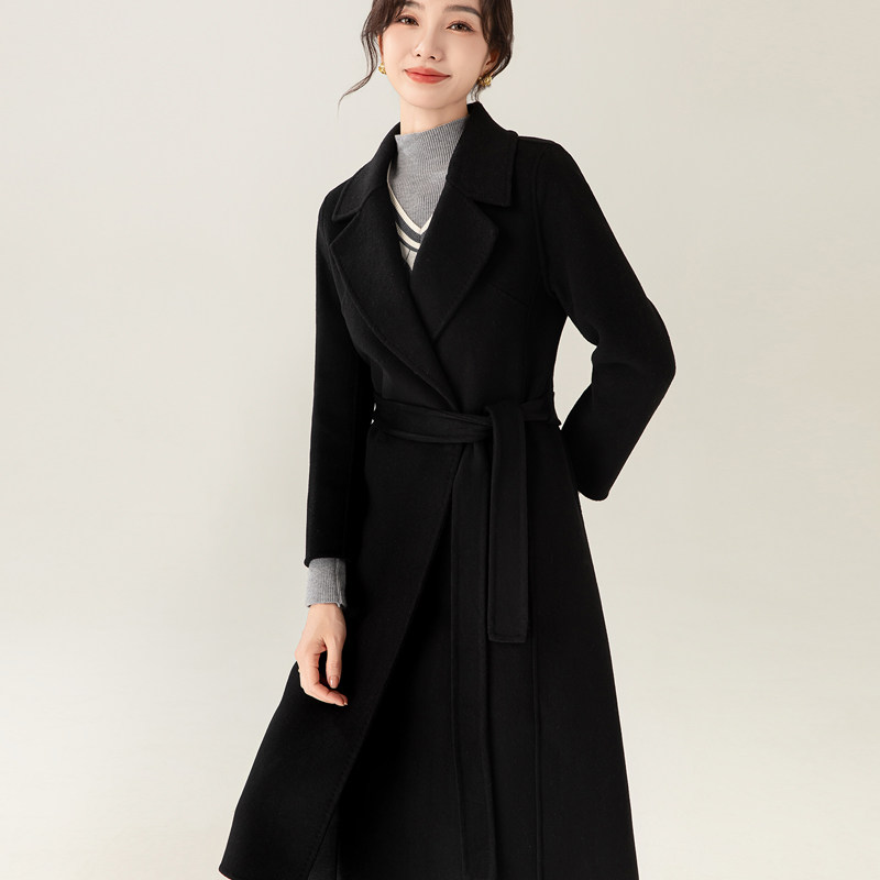 黑色正肩双面羊绒大衣女2025新款冬季中长款修身气质羊毛呢子外套