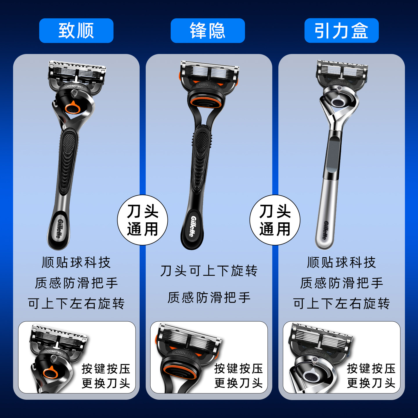 吉列小云刀云感手动剃须刀刮胡刀通用锋隐致顺锋速5刀片刀头