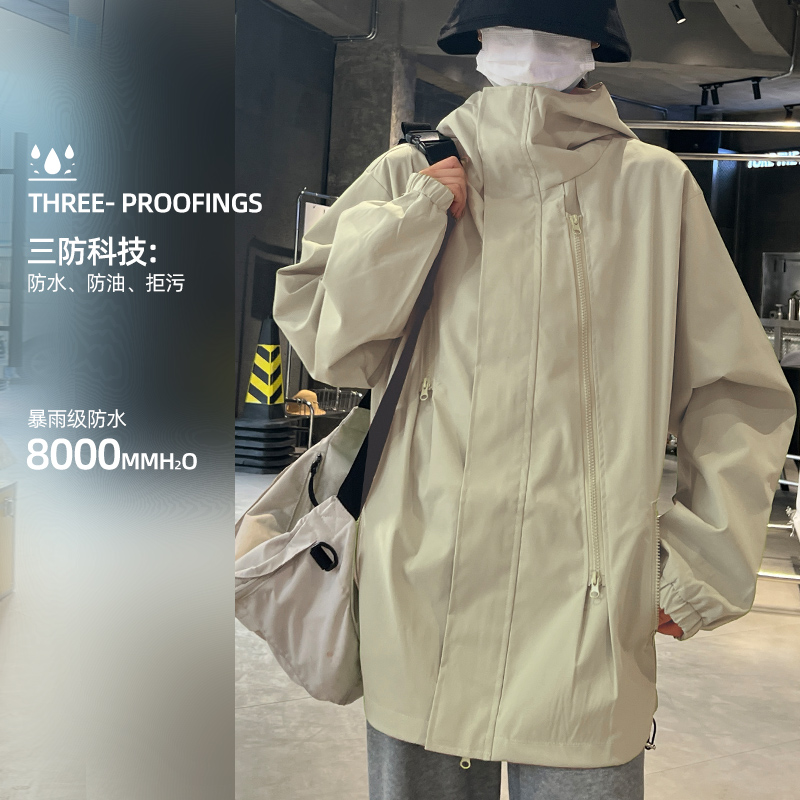 三防户外冲锋衣女2025新款连帽宽松外套男防风防水爬山黑色上衣潮