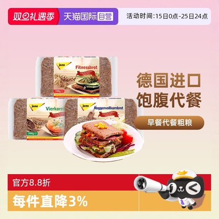 【自营】德国进口捷森黑麦面包无糖精减低脂早餐代餐粗粮全麦饱腹