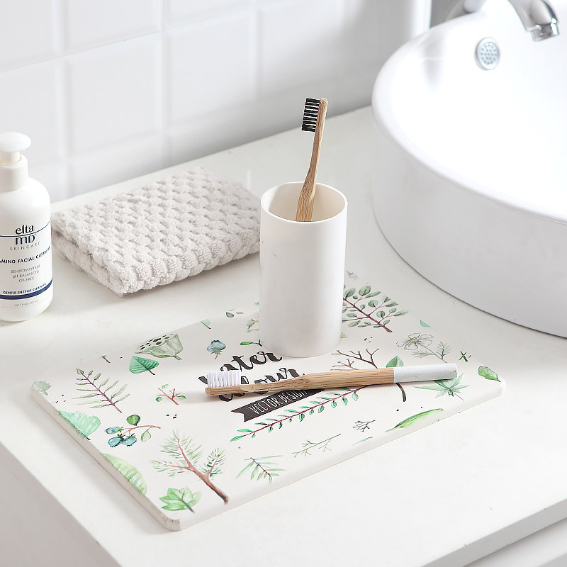 硅藻泥洗手台吸水垫家用洗漱台面杯垫电动牙刷胡须刀皂托土置物架