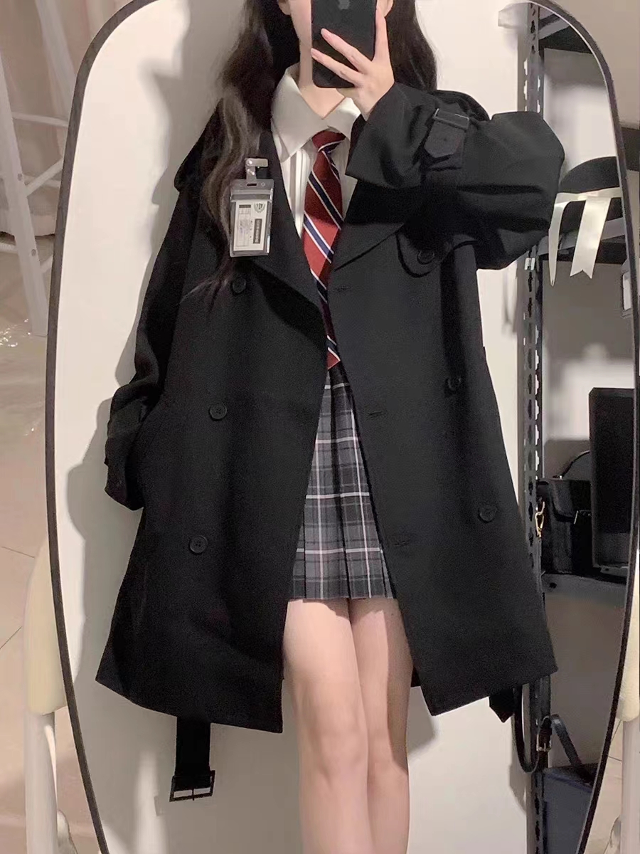黑色英伦风中长款大衣外套