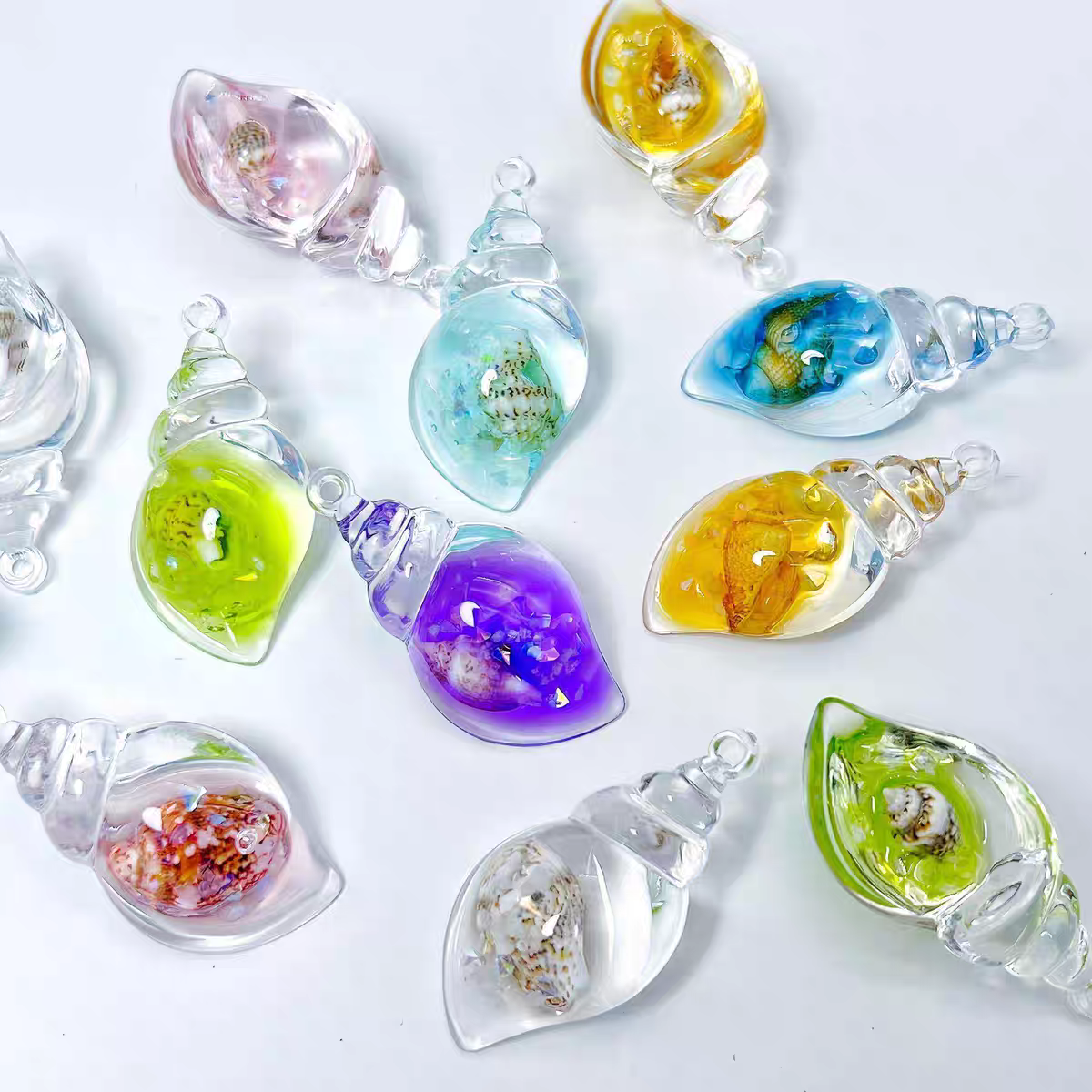 七彩夜光海螺螺中螺DIY奶油胶钥匙扣包包项链挂件亚克力饰品摆件