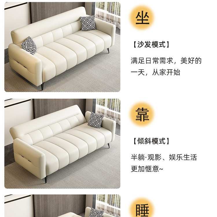 布艺沙发小户型客厅猫抓布钢琴键2024新款简约现代折叠沙发床两用
