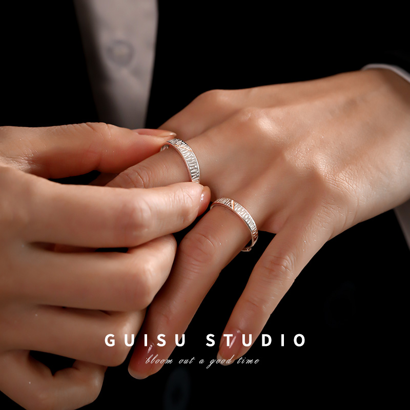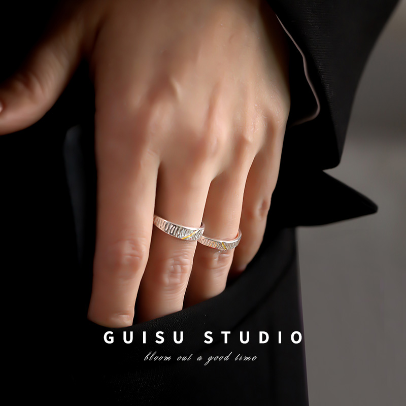 GUISU归素 丁达尔小众设计情侣对戒999纯银戒指一对开口个性礼物