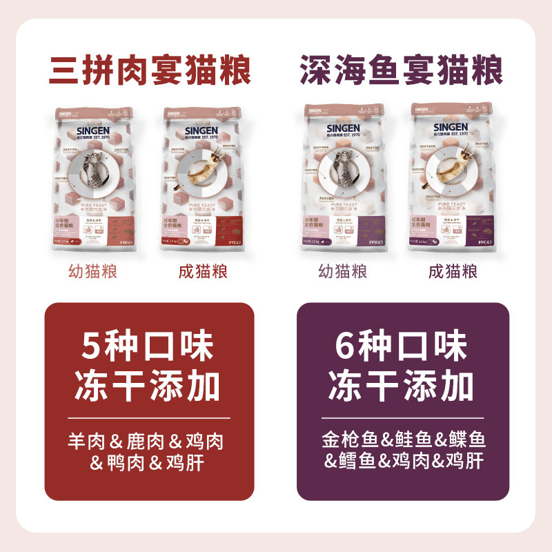 信元发育宝猫粮吉醇三拼肉宴深海鱼宴金枪鱼肉冻干猫主粮1.5kg