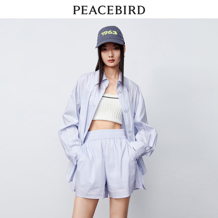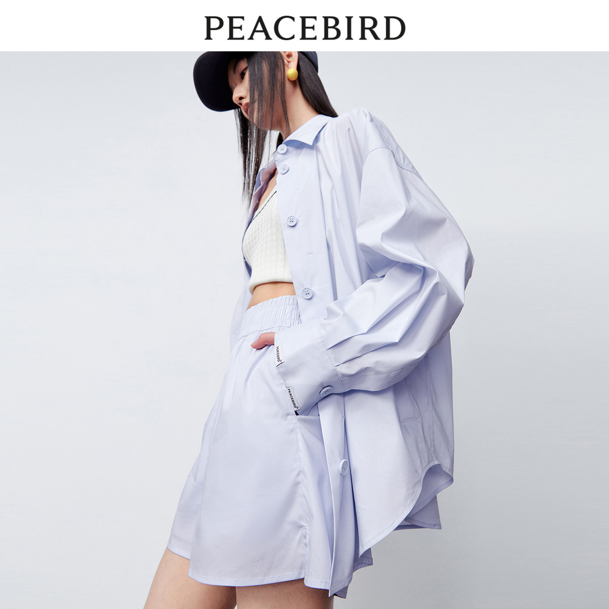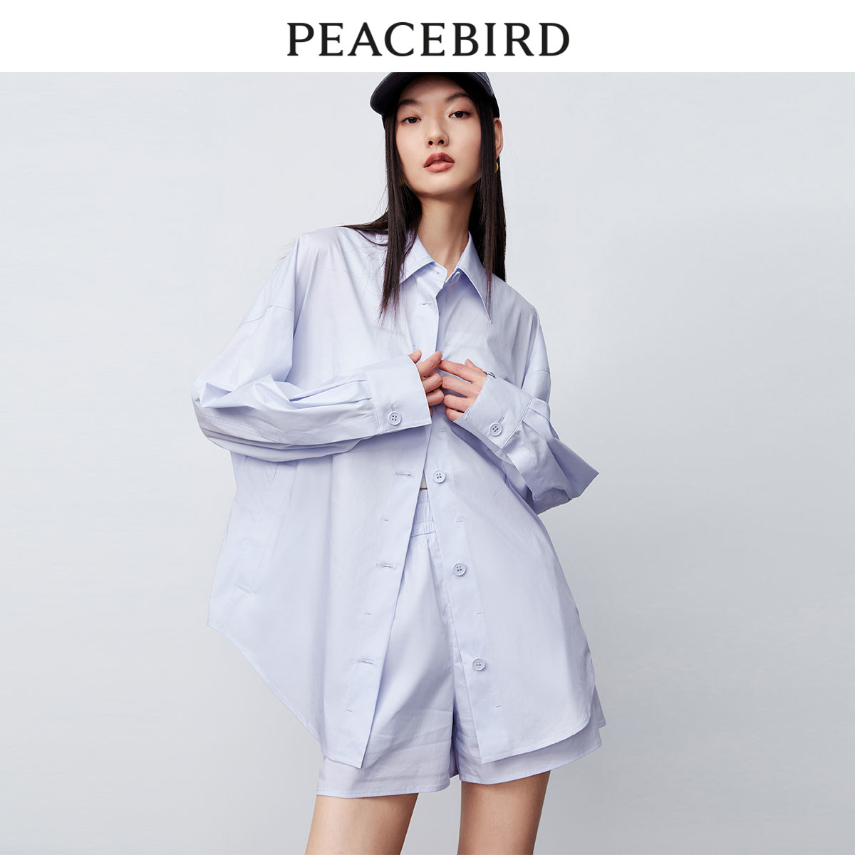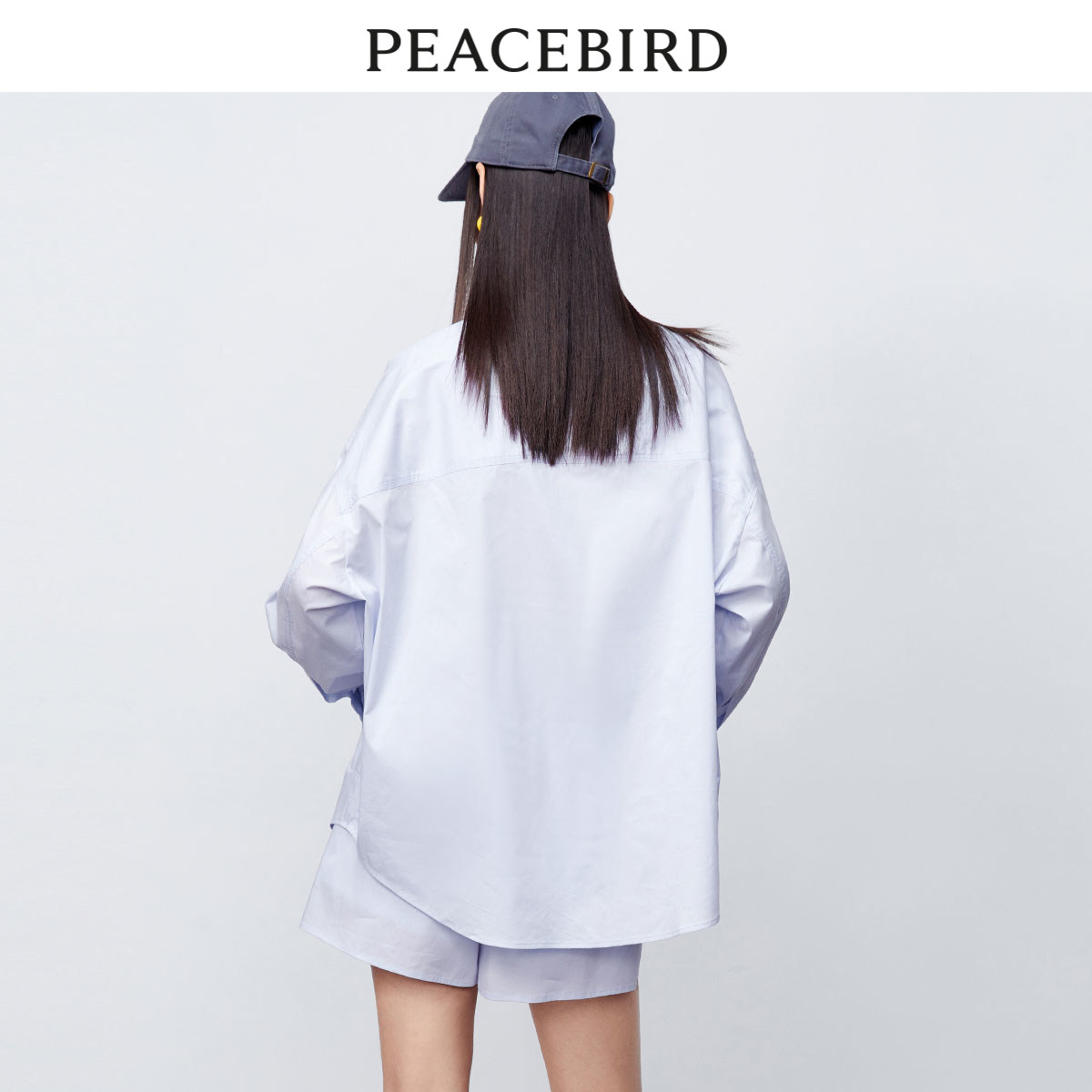 太平鸟雾霾蓝色宽松衬衫女长袖春装女士衬衣外套法式时尚奥莱