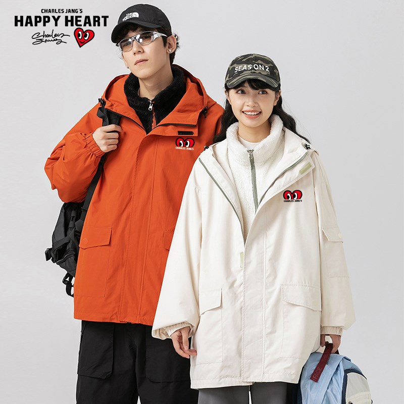 查尔斯桃心 美式户外三合一冲锋衣棉服男秋冬季防风防水加厚外套