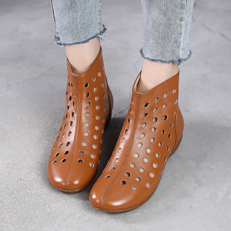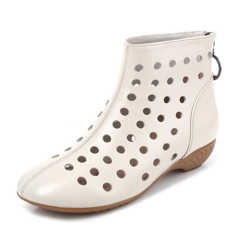镂空短靴2024春夏新款真皮平底女靴软J底舒适大码女鞋短筒软皮凉