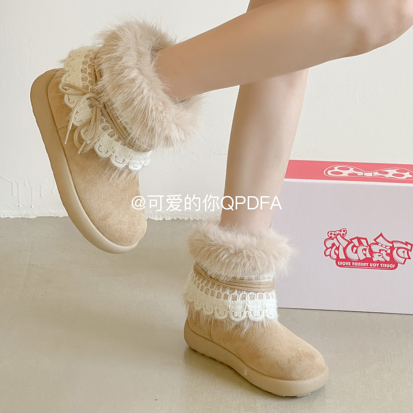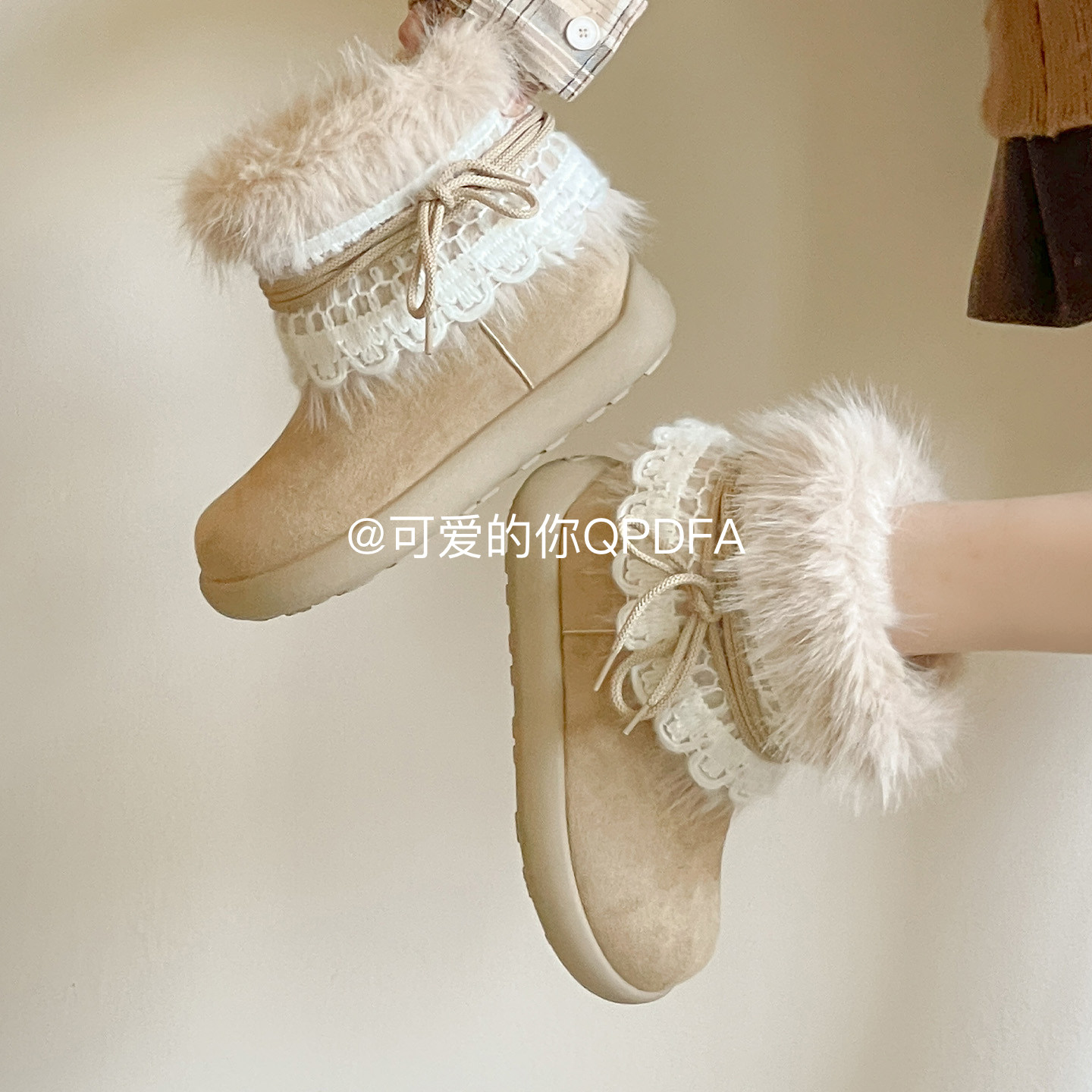 可爱的你冬季外穿加绒女鞋厚底雪地靴女款2025新款保暖棉鞋毛毛靴