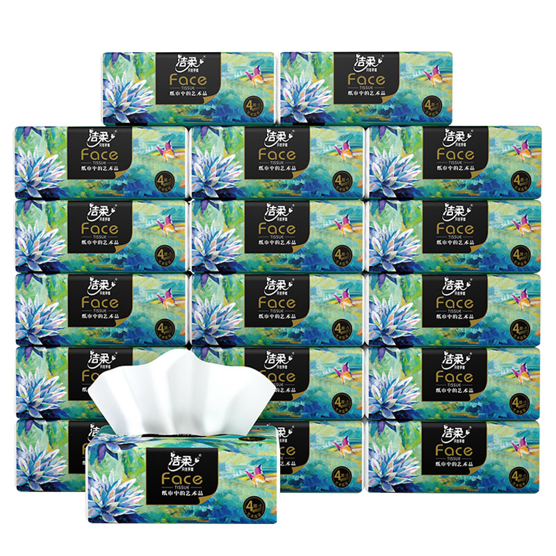 洁柔抽纸S码艺术油画纸巾4层加厚可湿水餐巾纸家用纸巾大包面巾纸