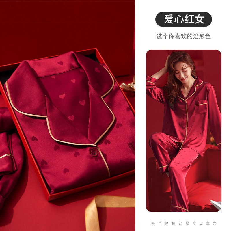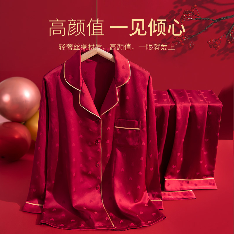 结婚睡衣新婚情侣套装高档婚用丝绸红色本命年男女新娘新郎家居服