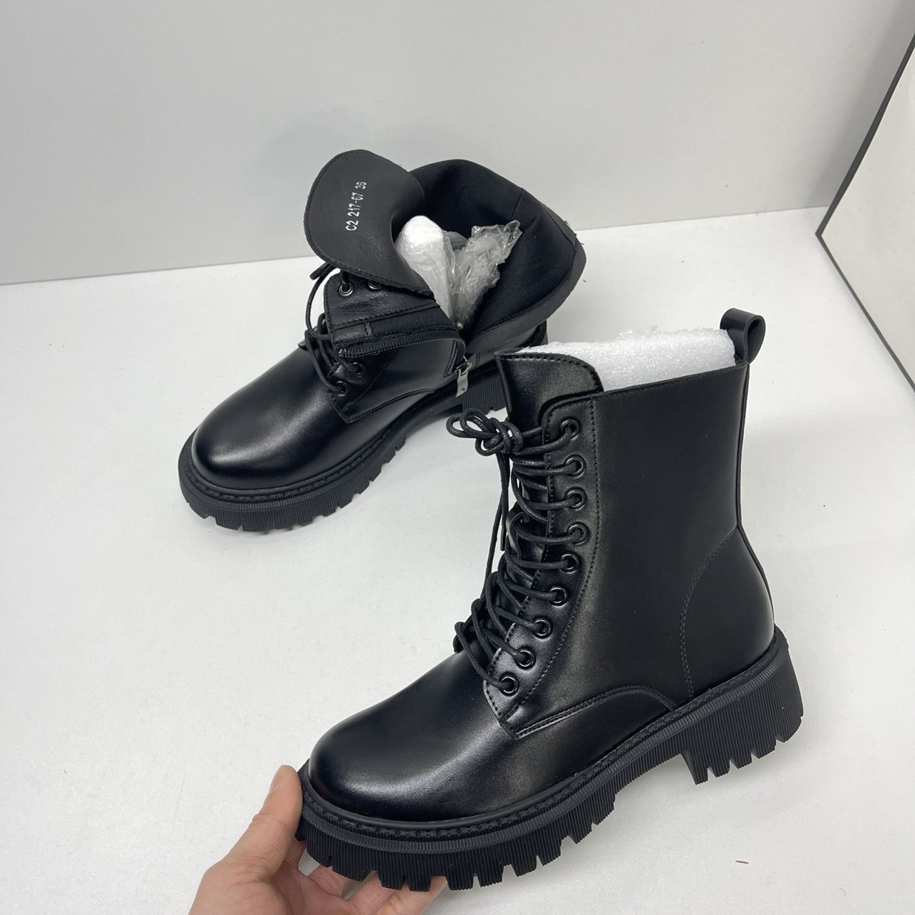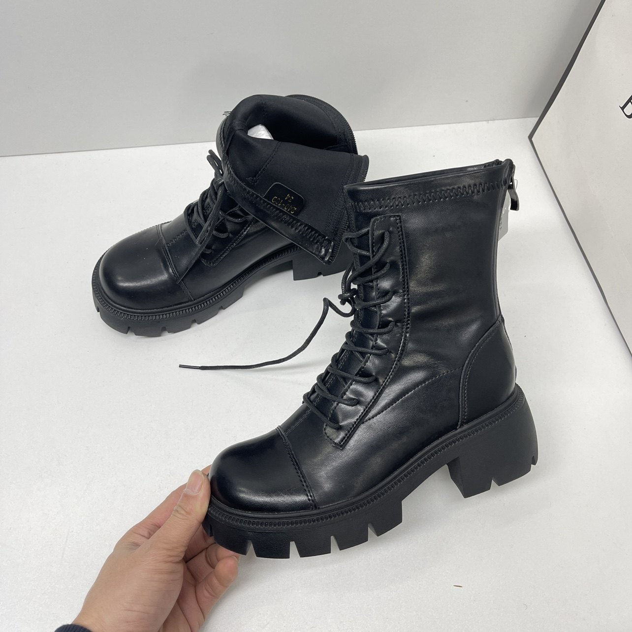 系带厚底增高马丁靴子女秋冬新款高跟切尔西短靴圆头拉链短靴女