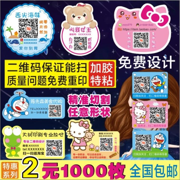 不干胶定做二维码贴纸广告LOGO定制作水果花束烘焙标签贴印刷