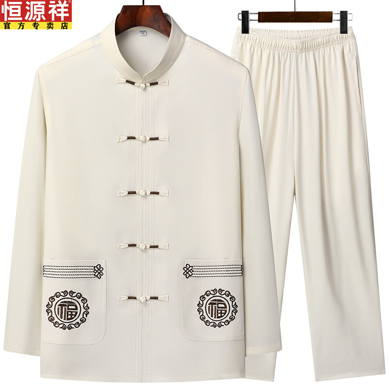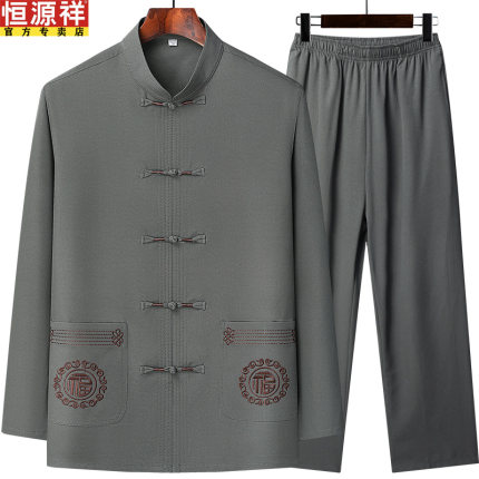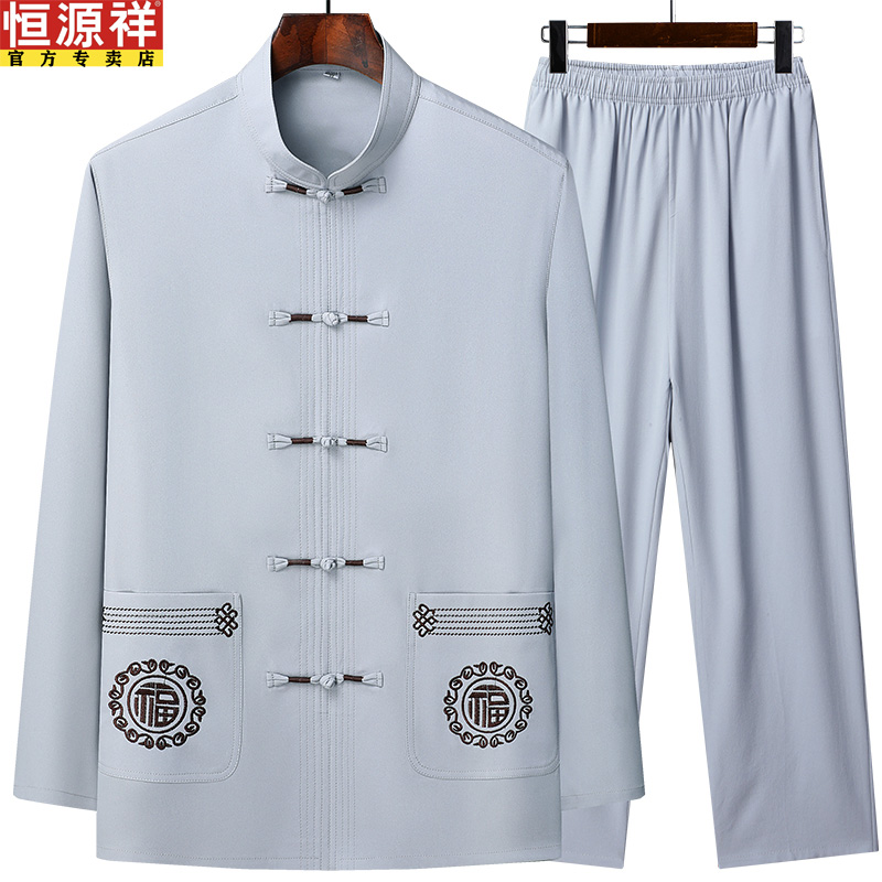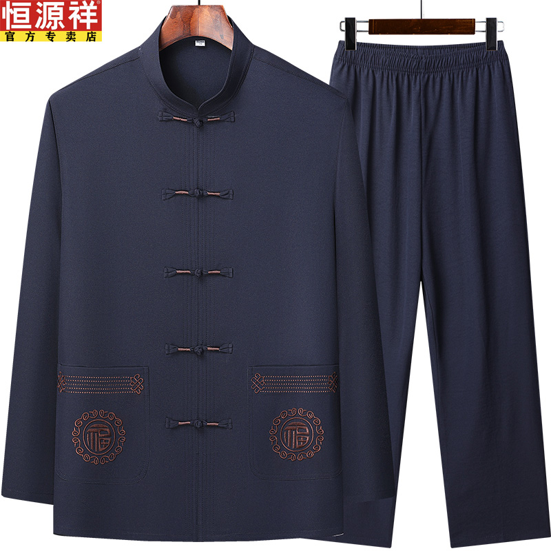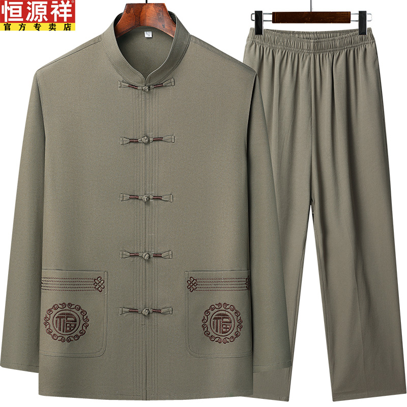 恒源祥春秋款爸爸装中国风长袖套装男士中老年唐装爷爷休闲上衣