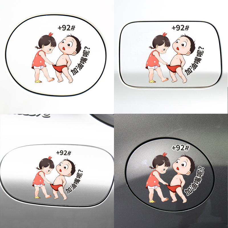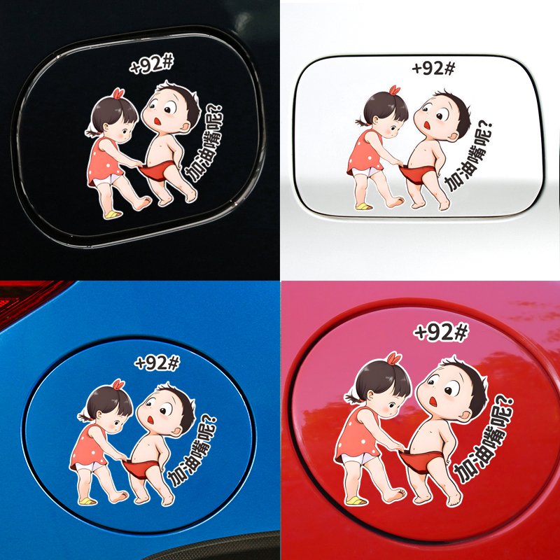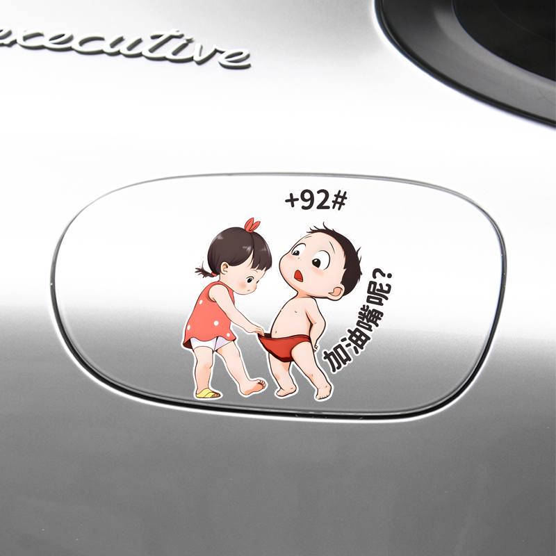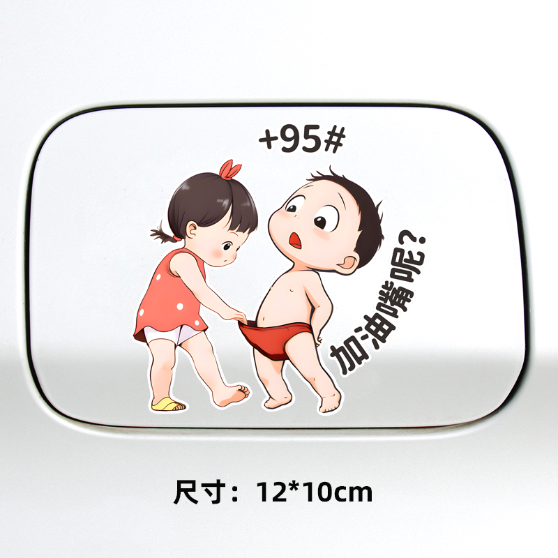 小女孩加油嘴呢油箱盖贴95号请加92#搞笑小屁孩车贴纸油号标提示