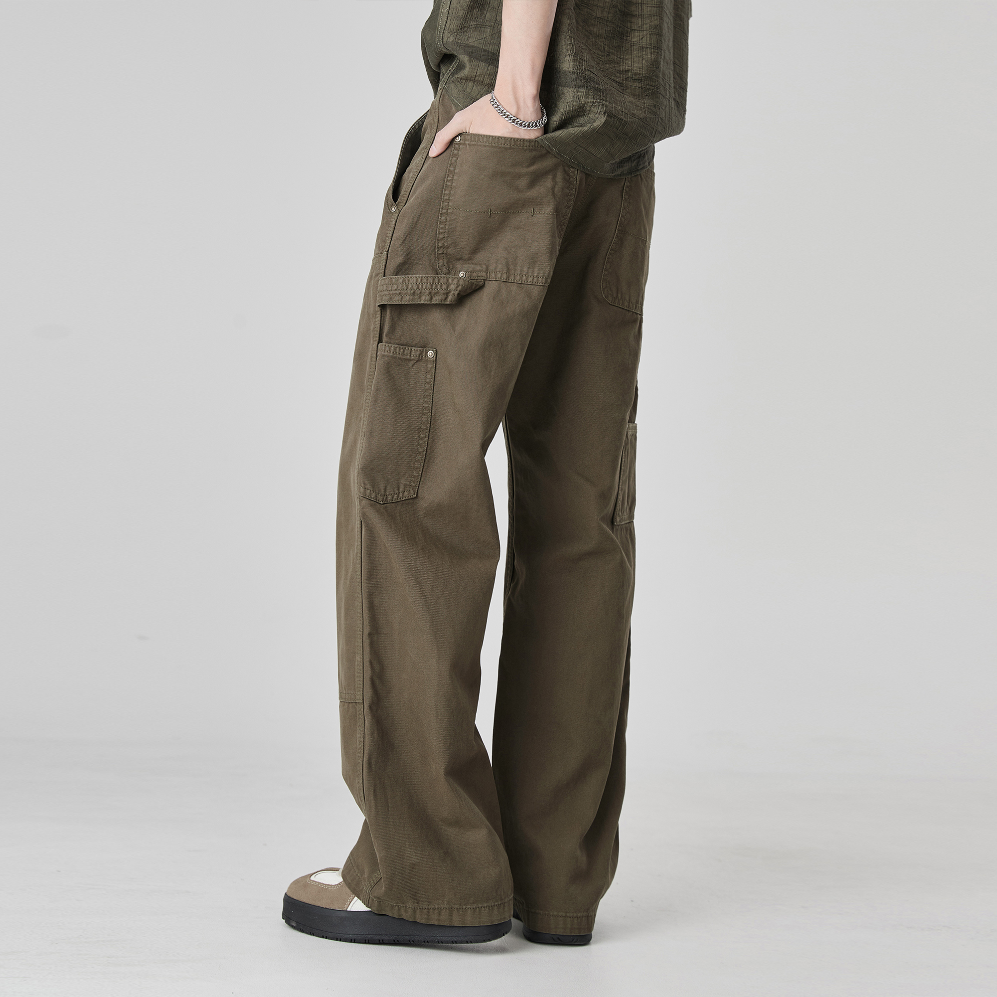 ALLIN 美式工装牛仔裤男潮牌休闲直筒阔腿伐木高街水洗微喇叭裤子