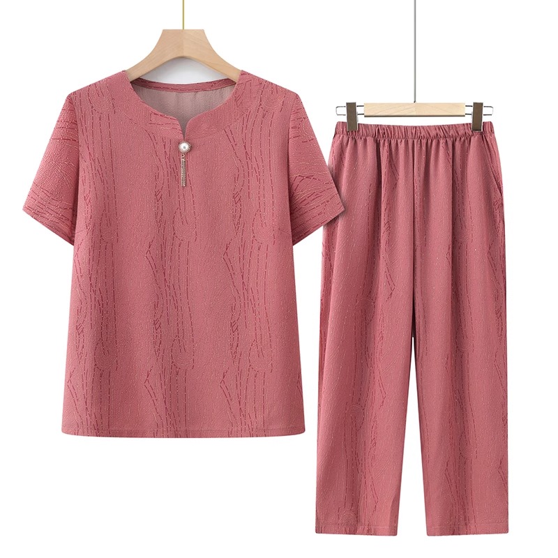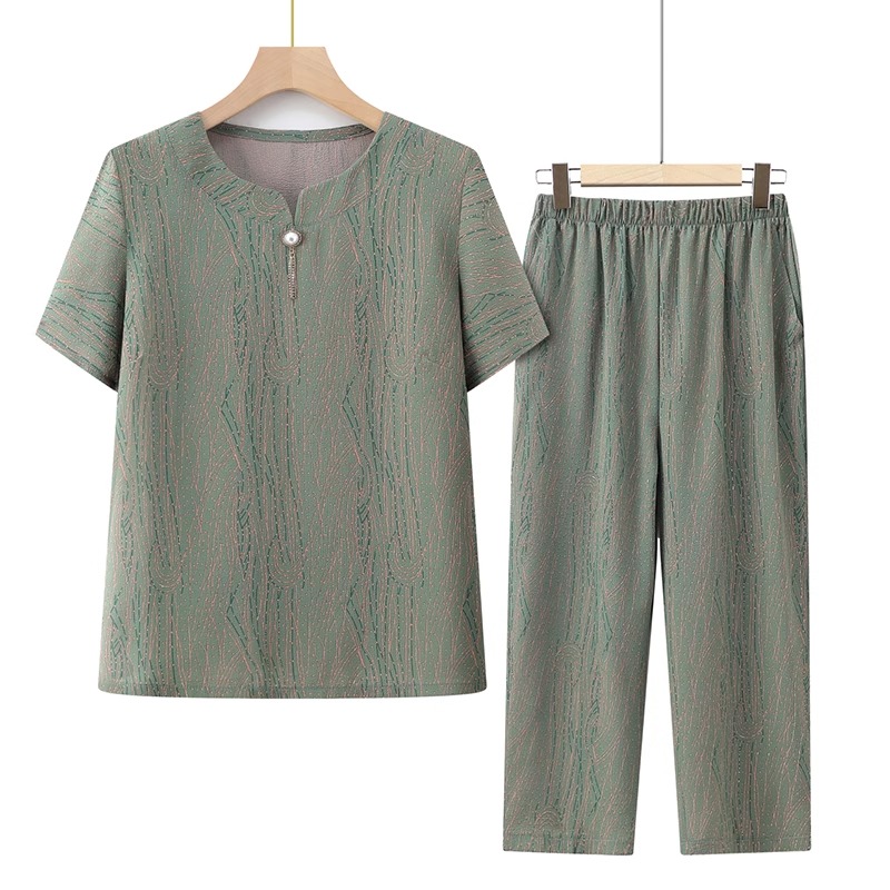 妈妈装套装中老年人夏装短袖T恤奶奶两件套60老太太老人衣服薄款