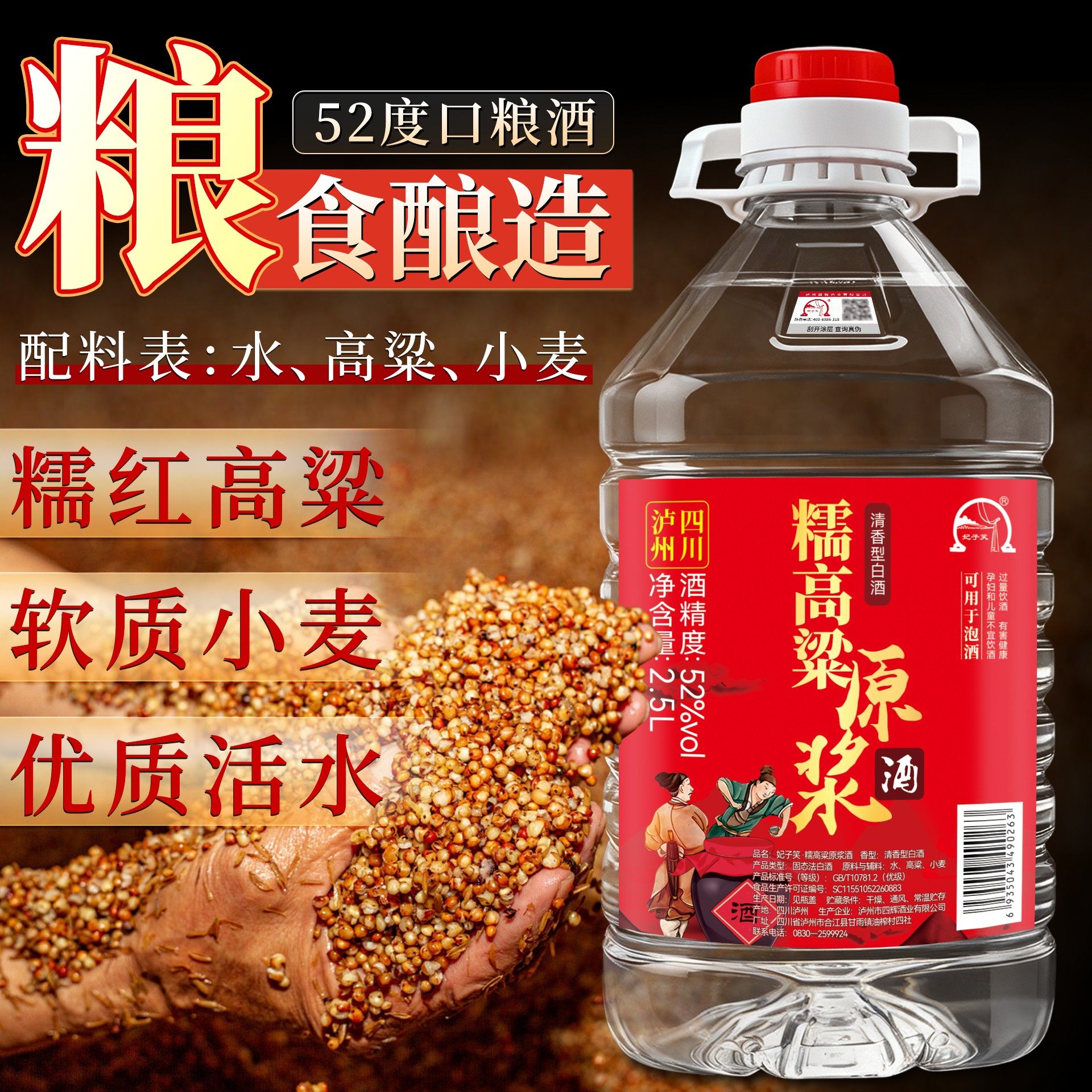 泸州高度原浆老窖纯粮食高粱泡酒专用5斤桶装清香型52度散装白酒