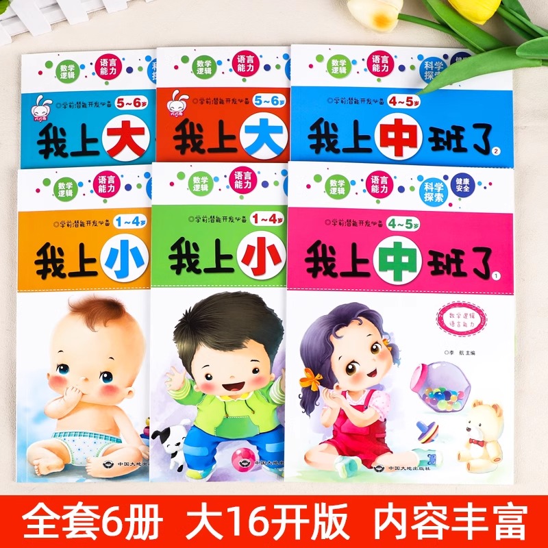 全套6册 我上中班了 幼儿园小班教材用书大班儿童书籍1-2-3-4-5-6岁宝宝幼儿启蒙早教书左右脑大脑开发思维逻辑训练阶梯数学练习题