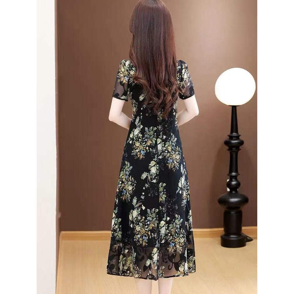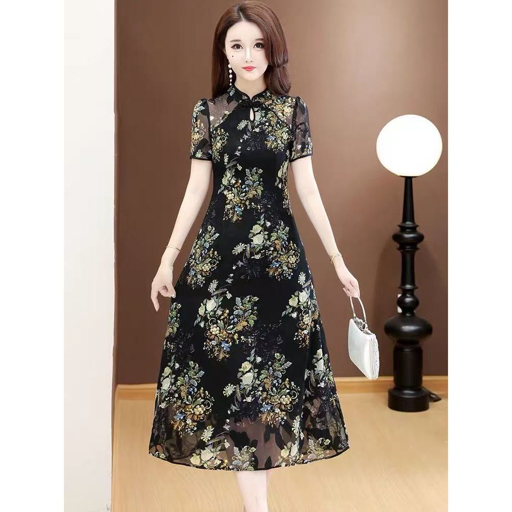 来此购 女士撤柜夏季气质显瘦修身洋气中式改良版旗袍短袖连衣裙