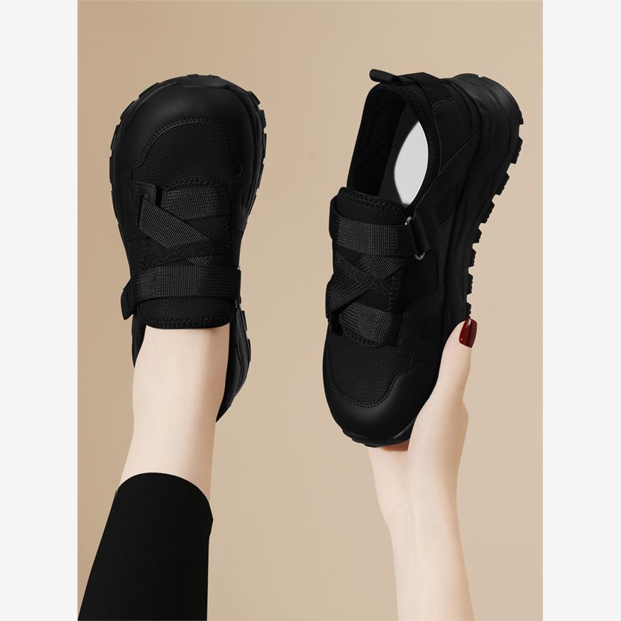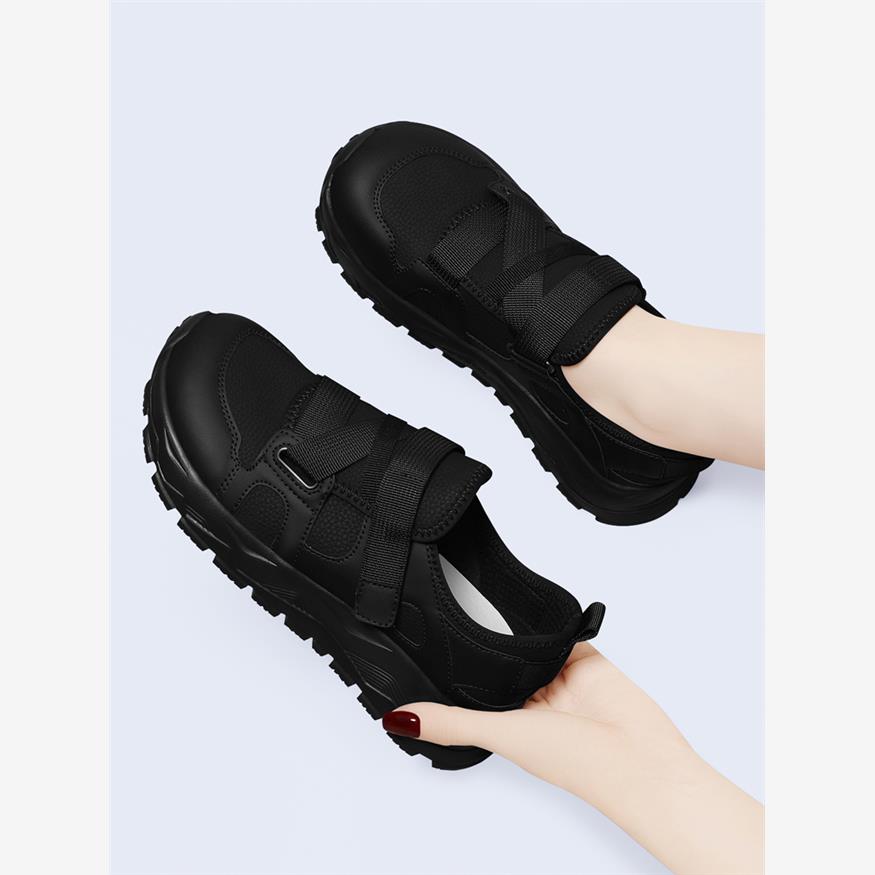 2025年秋季新款女士黑色时尚软底运动休闲鞋厚底透气深口舒适女鞋