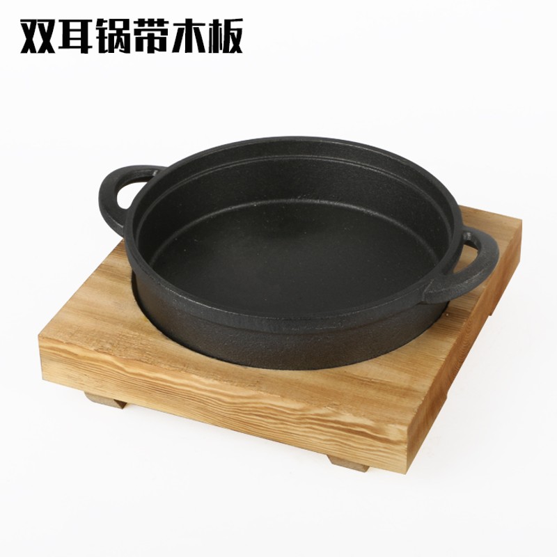 铸铁焗饭锅双耳锅海鲜干锅铁锅寿喜锅铁板烧盘电磁炉平底锅煎蛋锅