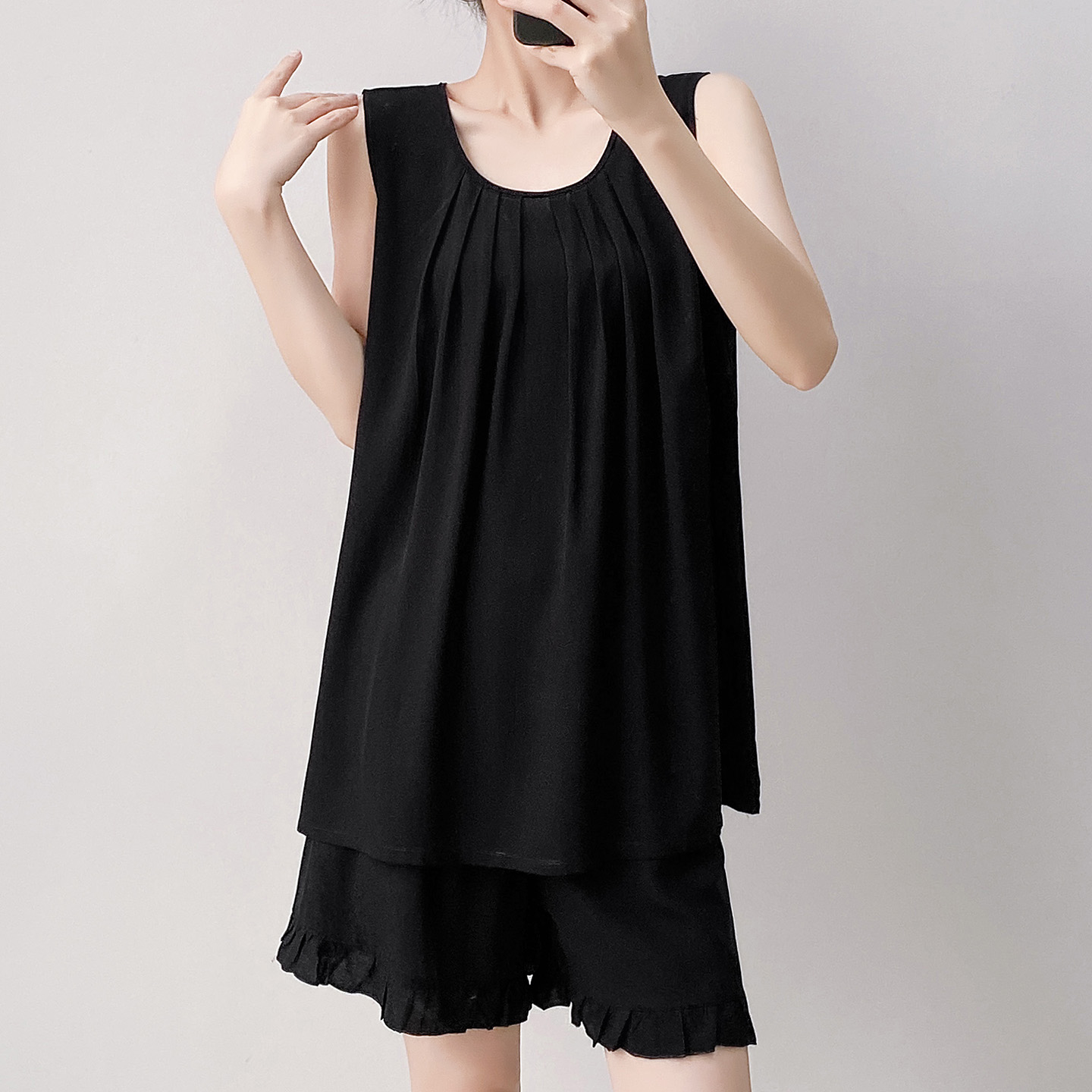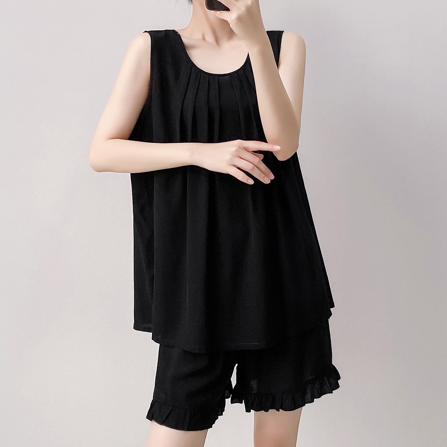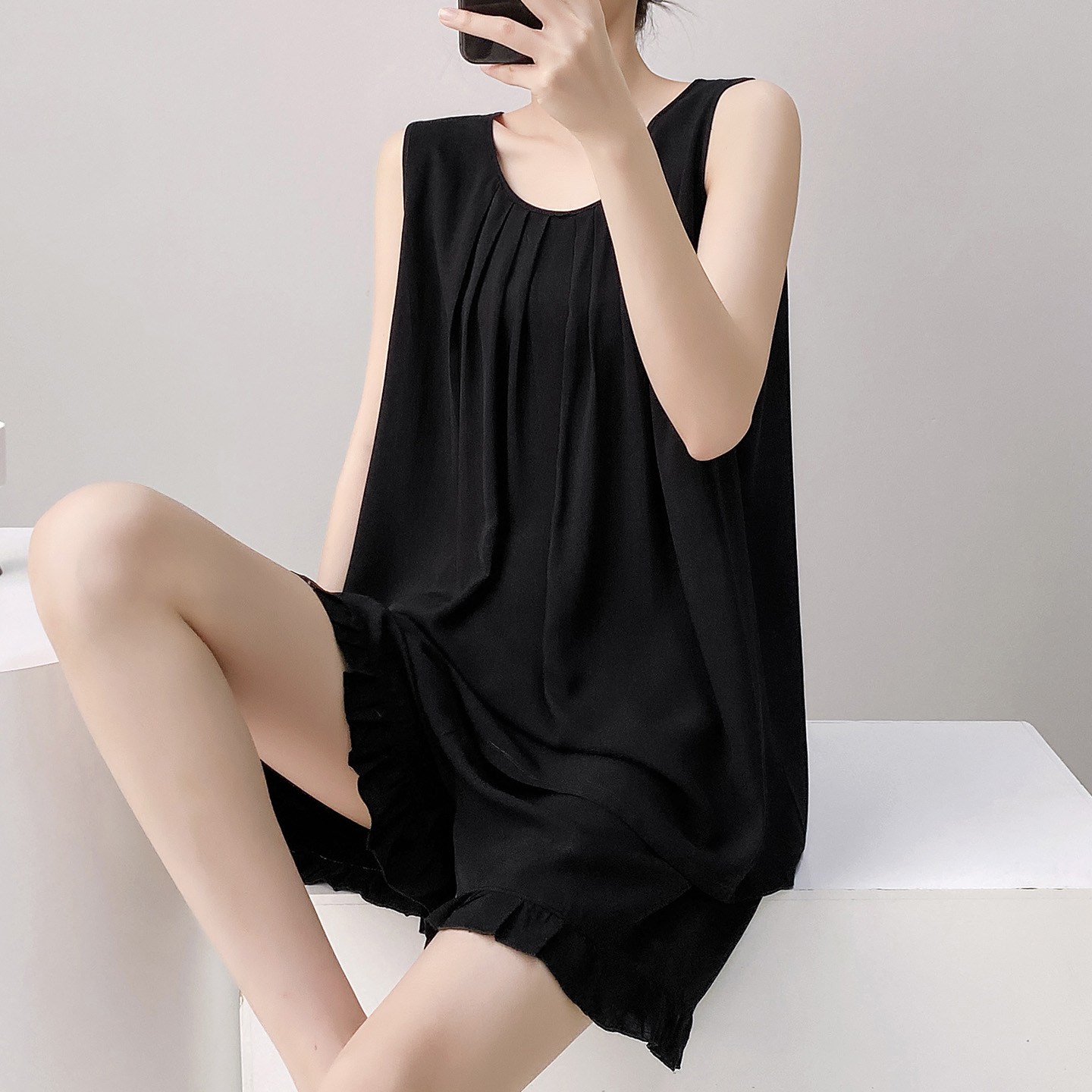 露背小心机睡衣女夏无袖背心短裤可外穿家居服棉绸简约套装夏大码