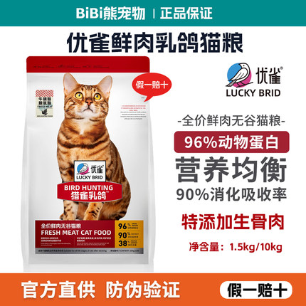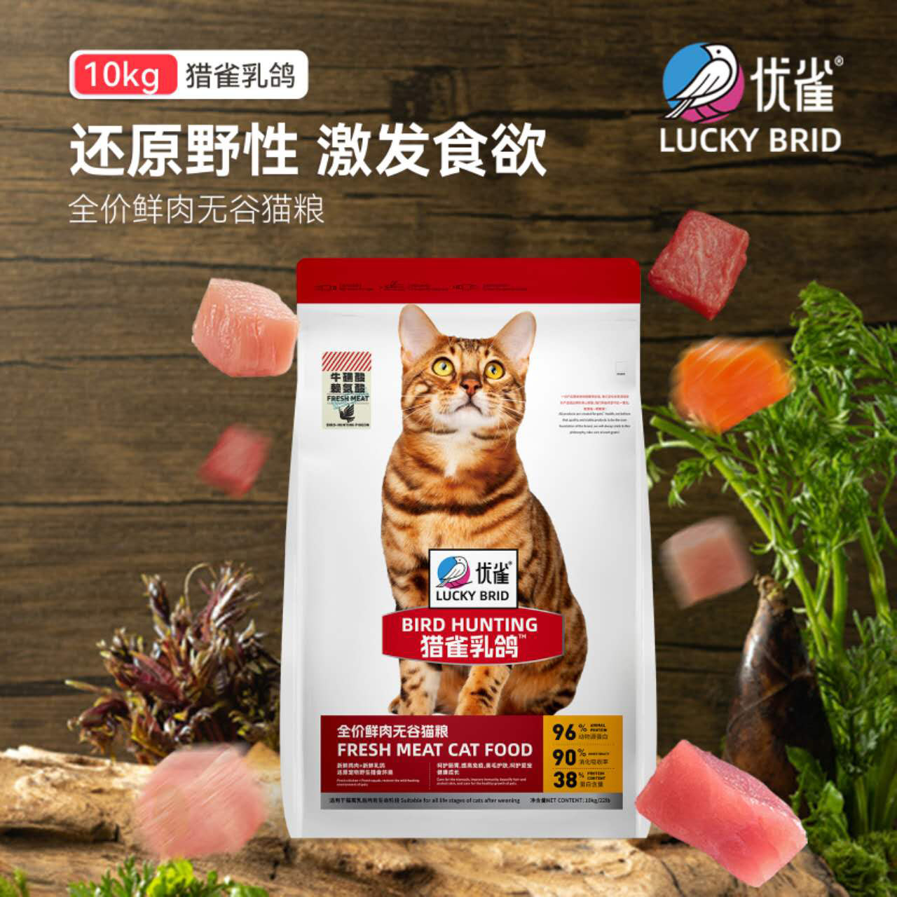 优雀猎雀乳鸽全价鲜肉无谷猫粮成幼猫冻干生骨肉猫粮增肥美毛10kg
