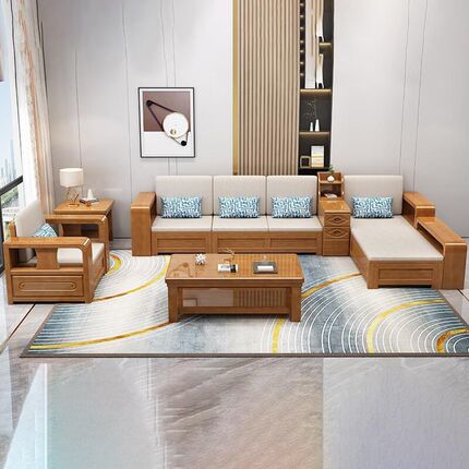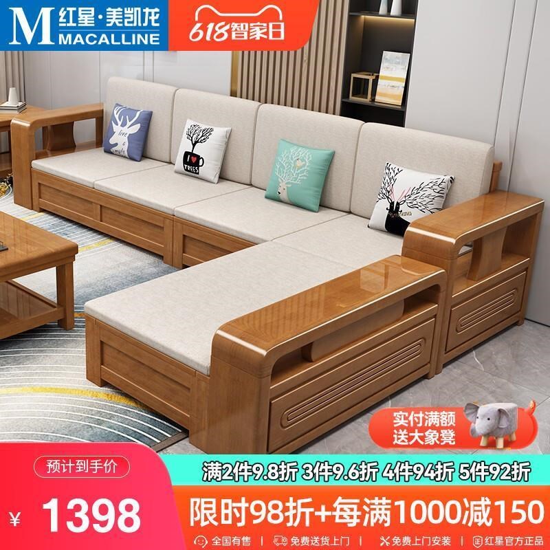 实木沙发组合客厅现代中式冬夏两用储物家用沙发木质中式家具