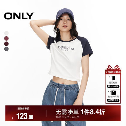 ONLY2025秋季新款潮流字母印花修身显瘦圆领正肩短款短袖T恤女