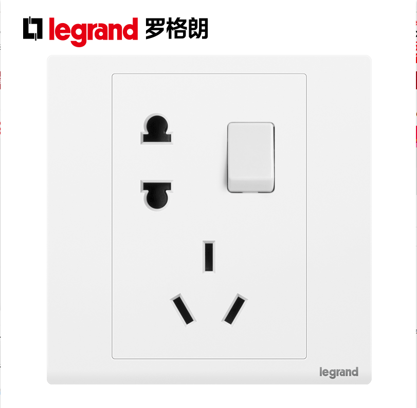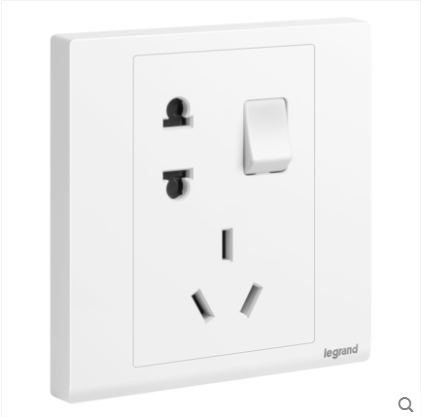 罗格朗朗淳S白色五孔带开关双控电源插座面板墙壁家用插座86型