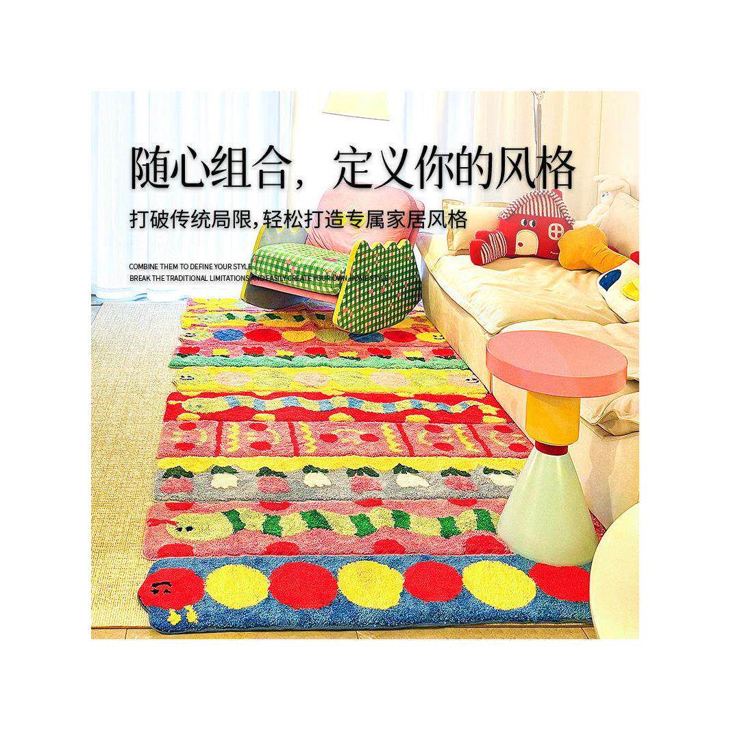 一件 创意彩色多巴胺床边毯可爱ins风房间客厅氛围感簇绒地毯